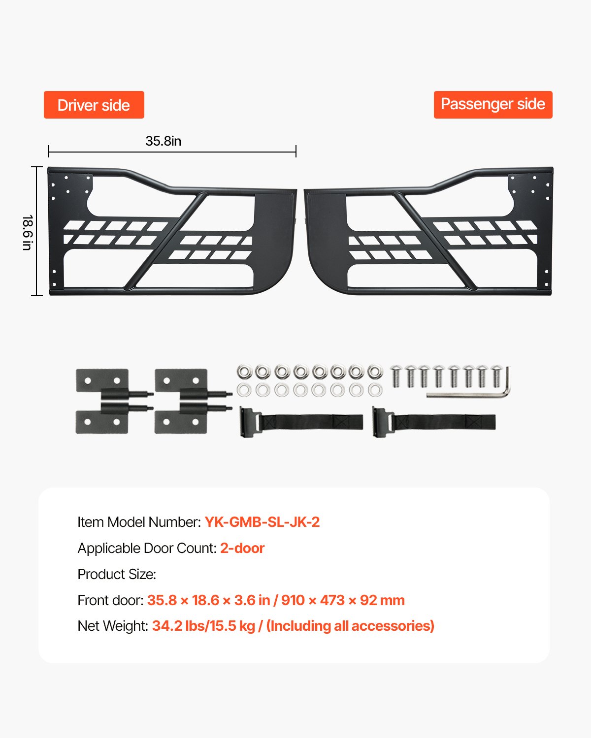 Jeep lovačka cjevasta vrata (2 vrata) s teškim šarkama i originalnim mehanizmom zaključavanja, Jeep vrata s gumenim podlogama i cijevima od kaljenog čelika, odgovaraju Jeep Wrangleru JK 2007–2018