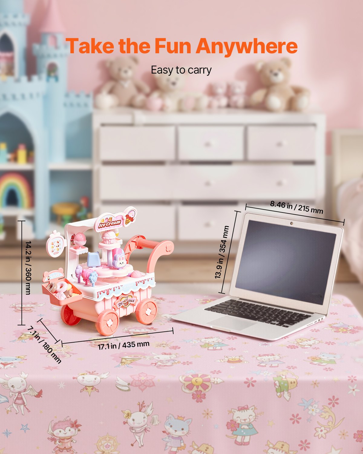 VEVOR Kamion za sladoled, set od 27 dijelova, slastičarnica od PP-a, kolica za pohranu s novcem za igru, zvučni i svjetlosni efekti, Montessori igračka za učenje, igranje uloga za malu djecu od 3 godine i više (roza)