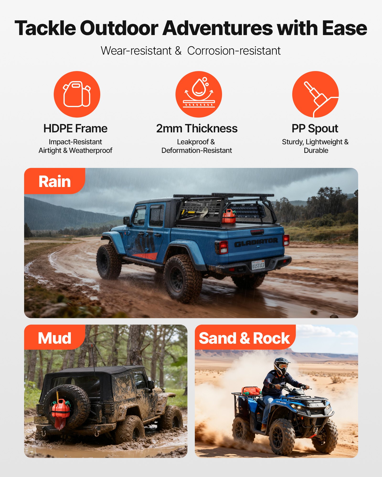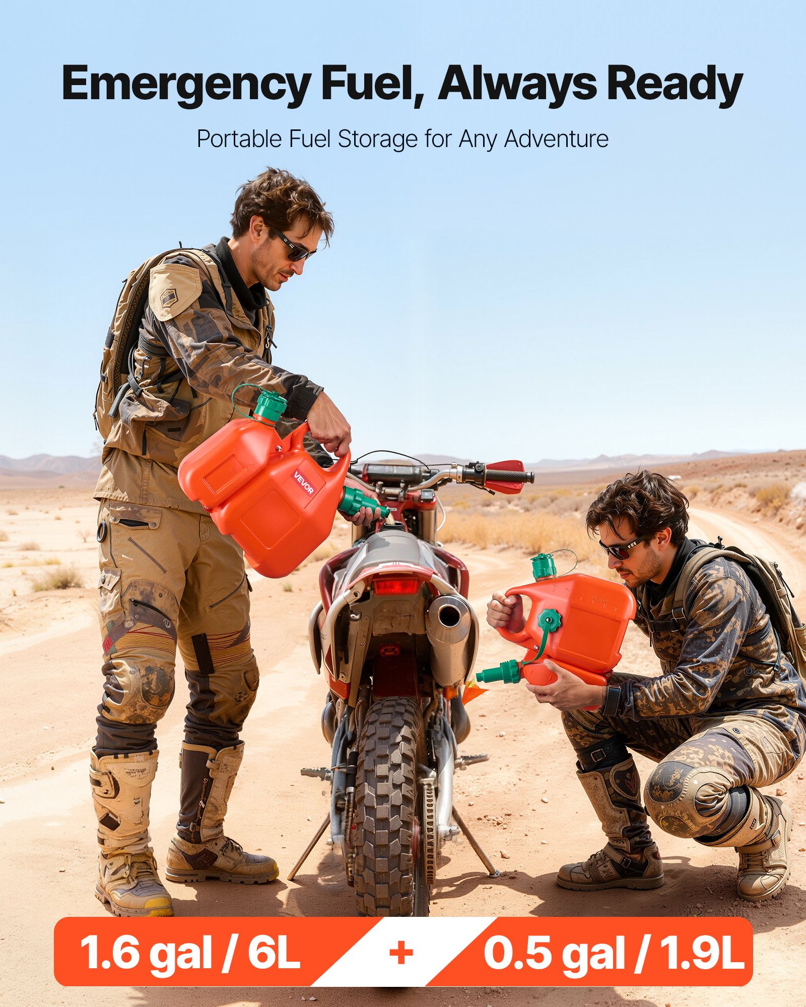 VEVOR kanistar za gorivo, spremnik za gorivo od 6 l s izljevom i dodatnim spremnikom za ulje od 1,9 l, maks. protok 5,5 l/min, spremnik za tekućinu za većinu automobila, motocikala, ATV-a i UTV-a
