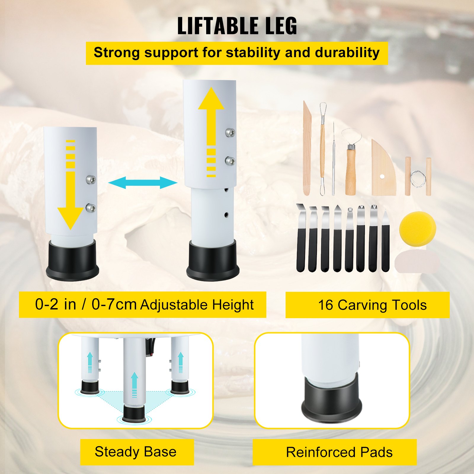 VEVOR Keramički kotač 28 cm 350 W Bijeli električni lončarski kotač s nožnom papučicom, Mini lončarski kotač s odvojivim okretnim stolom za zdjelu, Alat za izradu keramičke gline “uradi sam”