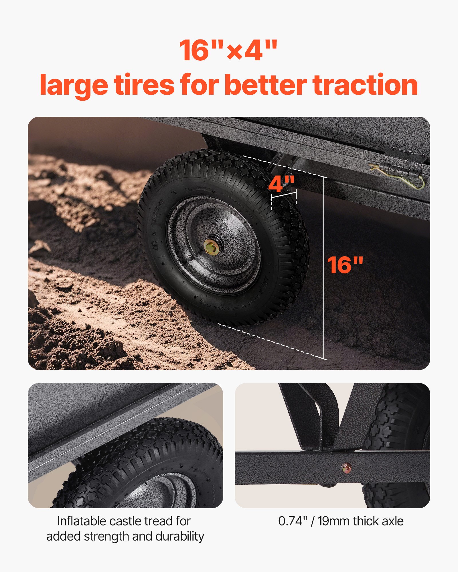VEVOR Kiper prikolica, nosivost 272 kg, prikolica za prijevoz ATV/UTV vozila, vučna kiper prikolica s gumama od 16″, ručno povlačenje ili papučica, dvorišna prikolica za vrtne traktore