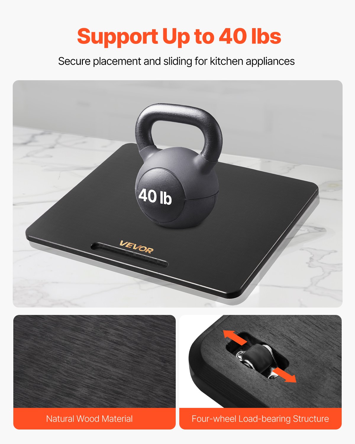 VEVOR klizna daska, 33 x 40,6 cm, daska s gumenim kotačićima i šupljom ručkom, jednostavno čišćenje, klizna daska, kolica za aparate, lako pomična podloga za aparat za kavu, multipraktik, crna