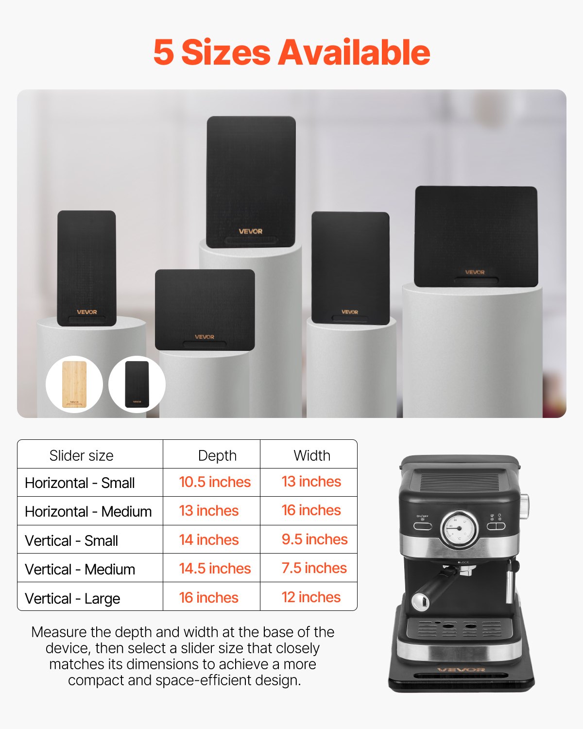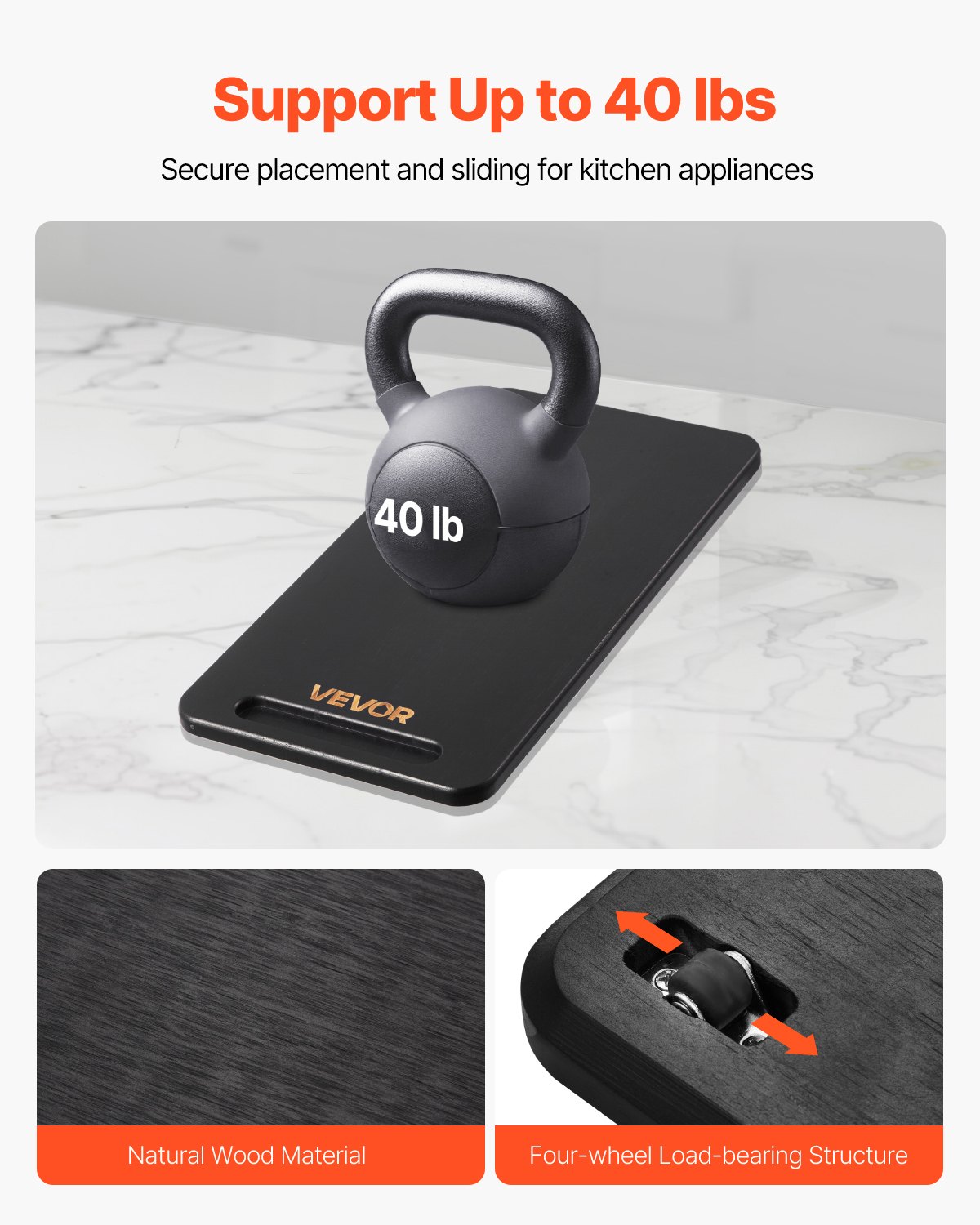 VEVOR klizna ploča, 36,8 x 19,1 cm, ploča s gumenim kotačićima i šupljom ručkom, jednostavno čišćenje, klizna ploča, kolica za aparate, lako pomična podloga za aparat za kavu, multipraktik, crna