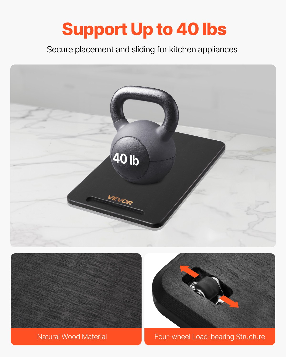 VEVOR klizna ploča, 356×241 mm, ploča s gumenim kotačićima i šupljom ručkom, jednostavno čišćenje, klizna ploča, kolica za aparat, lako pomična baza za aparat za kavu, multipraktik, crna