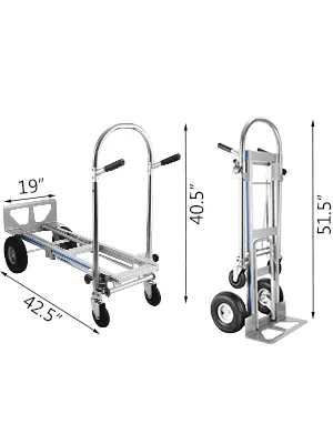 Ovo su aluminijska ručna kolica. Ova aluminijska ručna kolica lako se pretvaraju iz položaja ručnih kolica u položaj višenamjenskih kolica. Neka ova lagana ručna kolica obave teške poslove. Ergonomski dizajn čini ih idealnim za dom ili posao. Lako se pretvaraju u uspravna kolica s 2 kotača, kolica s 4 kotača ili kolica s 4 kotača s podupiranjem samo jednom rukom, bez alata i bez klinova.