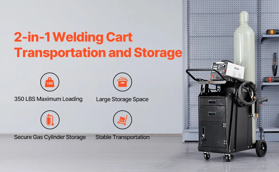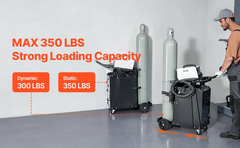 - Velika nosivost: Naša kolica za zavarivanje s ladicama lako podnose do 158 kg statičke težine i 136 kg dinamičke težine. Lako podnose razna teška opterećenja i savršena su za skladištenje i transport MIG i TIG aparata za zavarivanje, plazma rezača i druge opreme za zavarivanje, zadovoljavajući potrebe zahtjevnih profesionalnih zadataka.