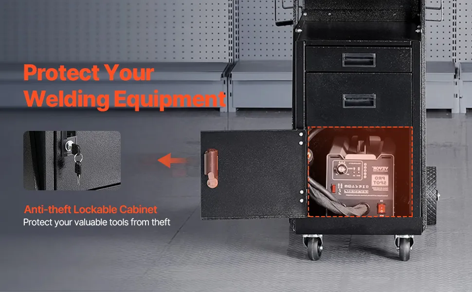 Kolica za zavarivanje plazma rezačima imaju zaključavajući ormarić sa zaštitom od krađe koji pruža dodatnu sigurnost za zaštitu vaših vrijednih alata. Zaštitite svoju opremu od krađe i osigurajte da je sigurno pohranjena kada se ne koristi.