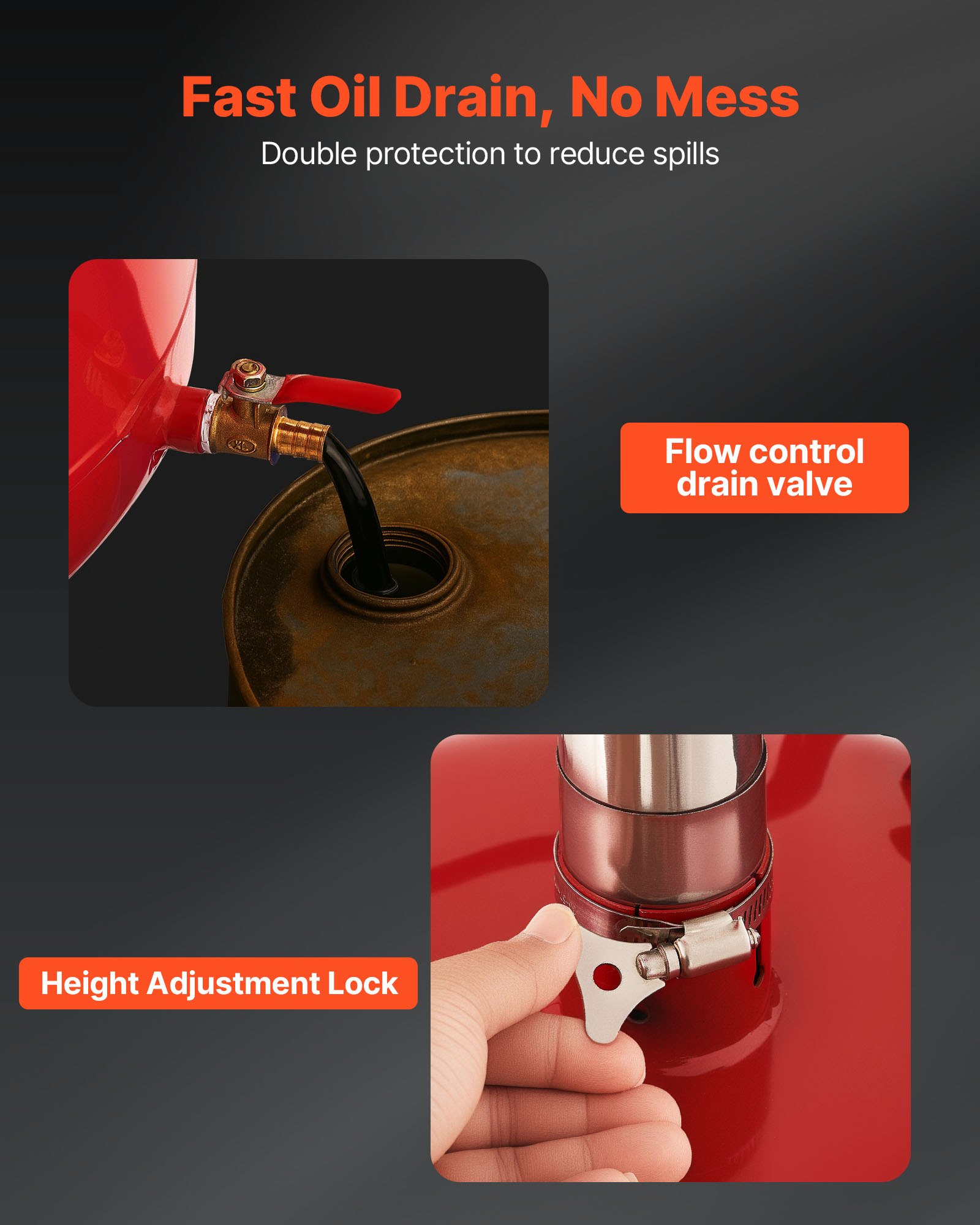 VEVOR Kolica za ispuštanje ulja 30 L, Kolica za ispuštanje ulja s podesivim lijevkom, Spremnik za ispuštanje ulja s kotačima i kutijom za alat, Ispust za prijenos tekućeg goriva za automehaničarske radionice, Crvena