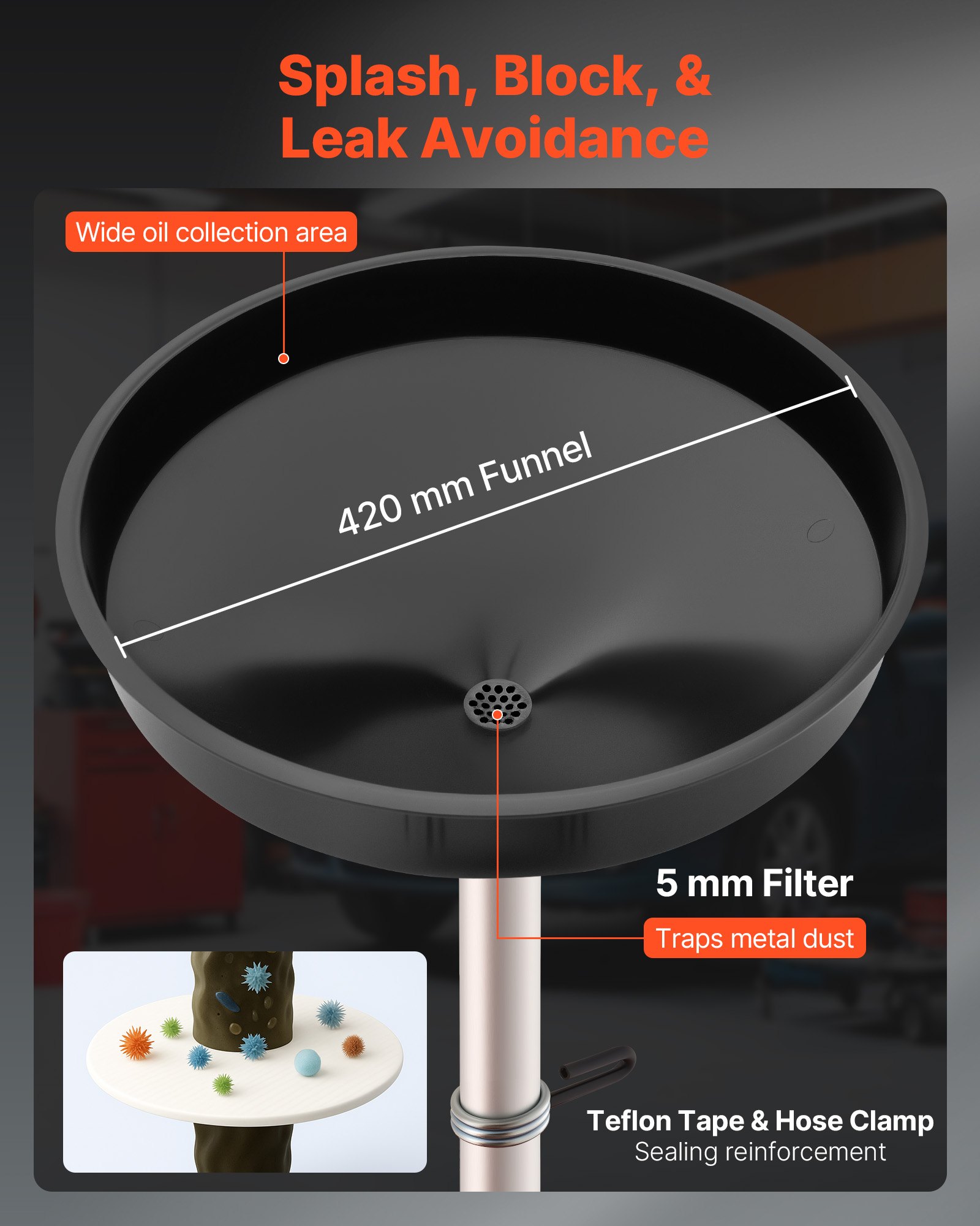 VEVOR Kolica za ispuštanje ulja 68 L, Kolica za ispuštanje ulja s podesivom visinom lijevka, Spremnik za ispuštanje ulja s kotačima, Ispuštač ulja za prijenos tekućeg goriva za automehaničarske radionice, garaže, Crveni