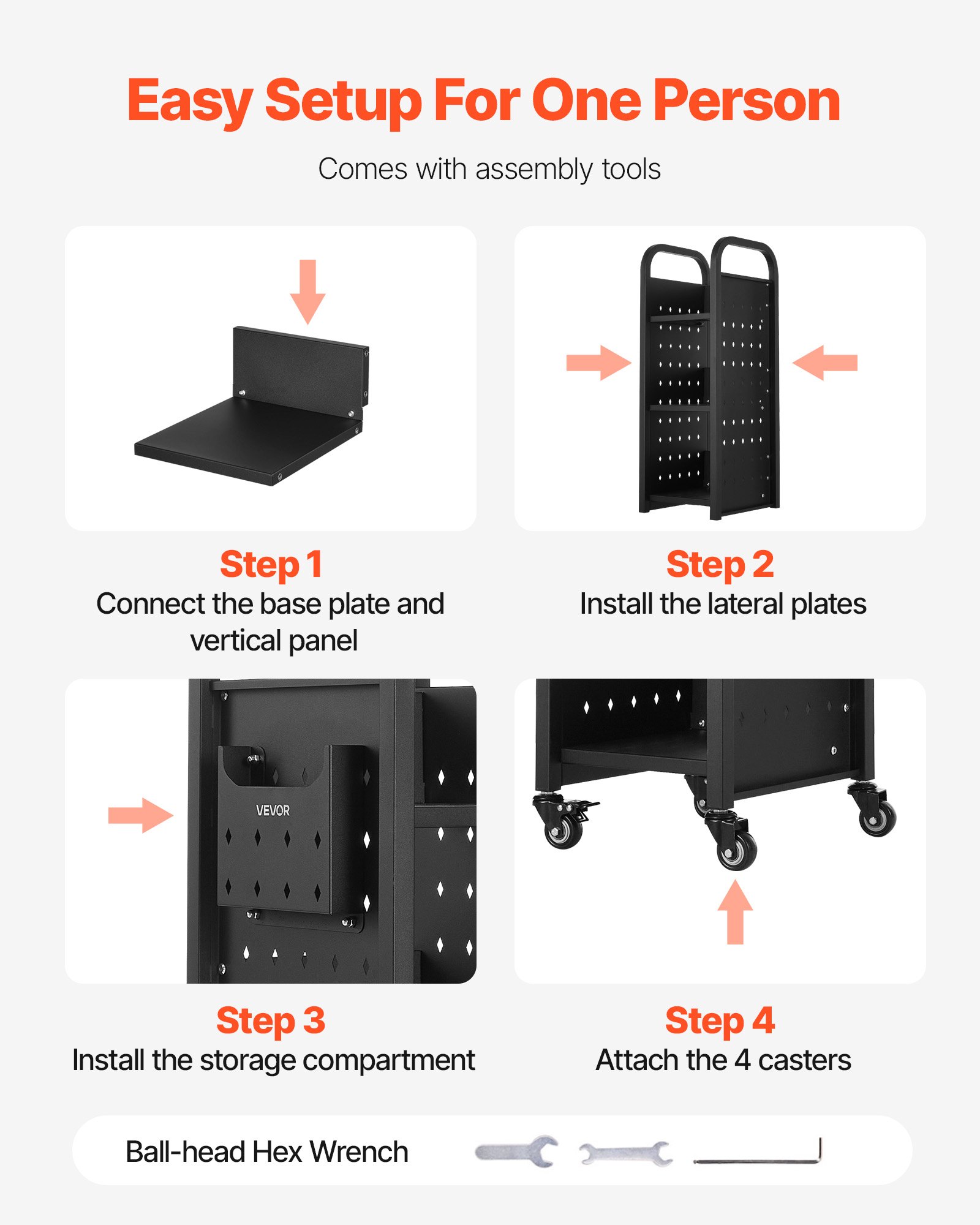 VEVOR kolica za knjige, nosivost 100 kg, kolica za knjižnicu, 32 x 35 x 93,5 cm, jednostrana polica za knjige u obliku slova L s dvostrukim kotačićima s kočnicama, kolica s policama za dnevni boravak, ured, školu, crna