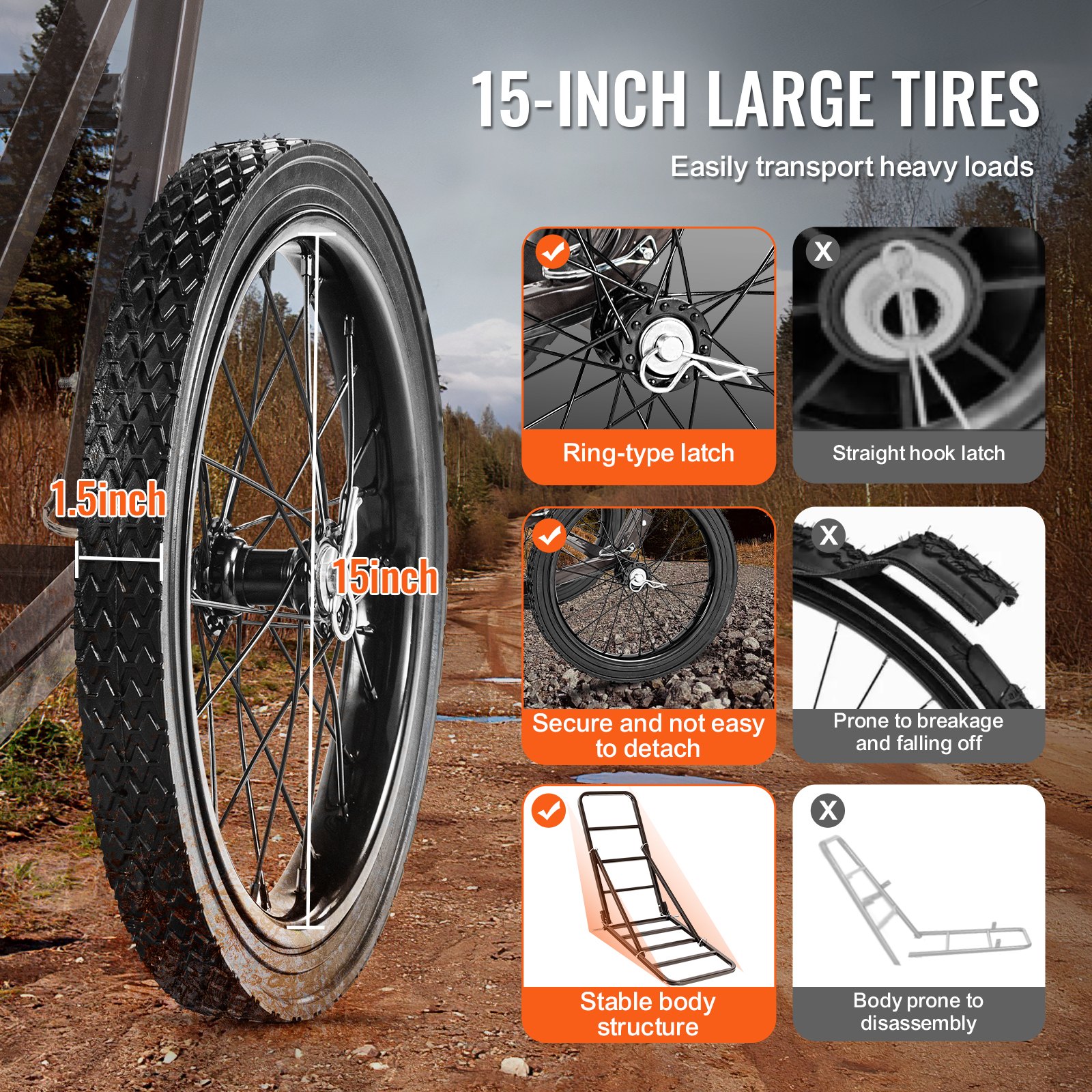 Maksimalna nosivost: 136 kg / 300 lbs, Promjer kotača: 381 mm / 15 in, Glavni materijal: Željezo Q195/1.5T, Težina proizvoda: 12,35 kg / 28,1 lbs, Dimenzije proizvoda: 112 x 65 x 105 cm / 44,09 x 26,18 x 41,34 in, Broj modela artikla: YL1501