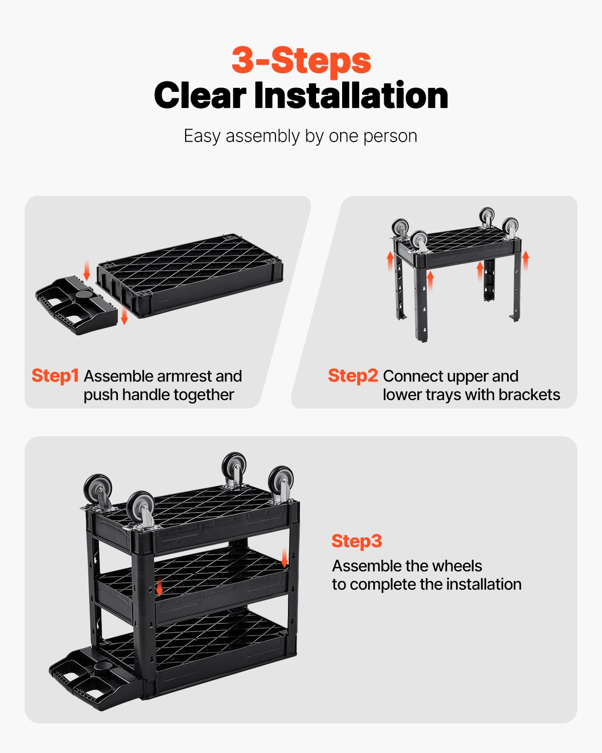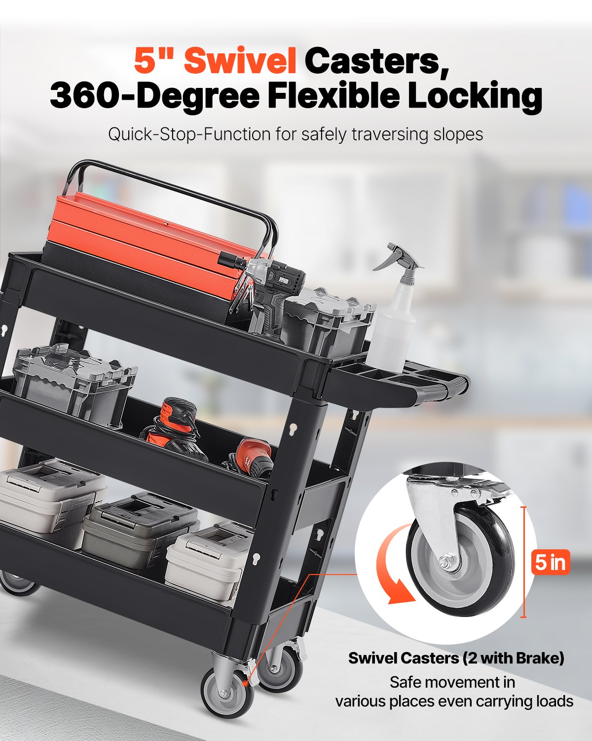 VEVOR Kolica za posluživanje 103×43,5×85,7 cm Kolica za rasipanje Nosivost 249 kg Kolica od polipropilena na kotačićima Višenamjenska kolica s 3 odjeljka Kuhinjska kolica s okretnim kotačima Kolica za nišu Radionička kolica Servisna kolica
