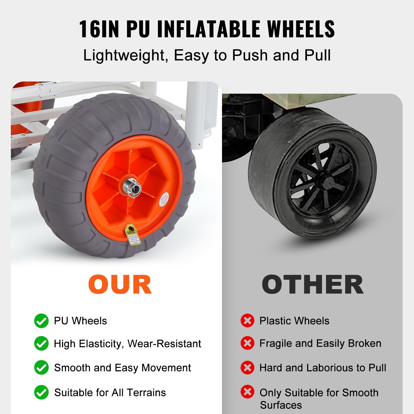 VEVOR Ribarska kolica, Aluminijska transportna kolica s 2 PU kotača, Ribarska kolica, 1480x940x950mm, Nosivost 159kg, Ribarska kolica, Kamion s vrećama, Kolica za plažu, Kolica za plažu