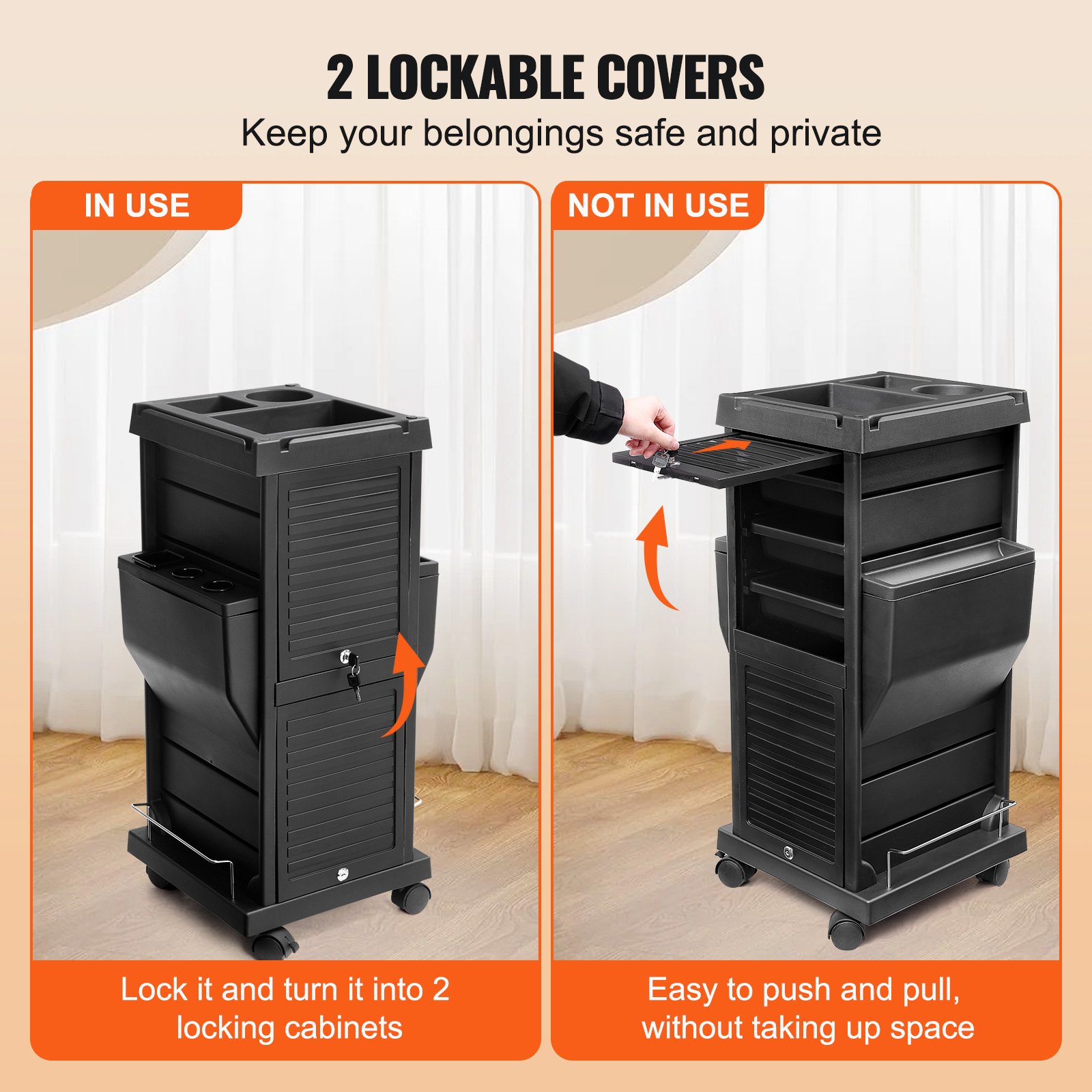 VEVOR Kolica za salon, Kolica za frizere s mogućnošću zaključavanja za stiliste sa 6 uklonjivih ladica i držačem za alat, Plastična kolica za frizere s kotačima koji se mogu zaključati za kozmetičke, spa i frizerske salone