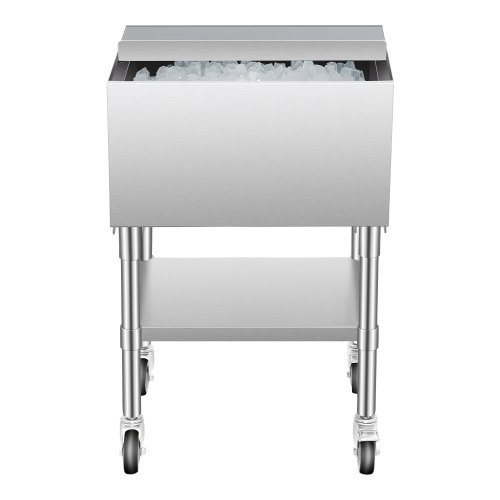 VEVOR Komercijalna posuda za led 61,6 L Kutija za led na kotačima (610 x 484 x 935 mm) Rashladna kolica od nehrđajućeg čelika s kliznim poklopcem, donjom policom za odlaganje, podesivim kuglastim nogama, za bar i restoran