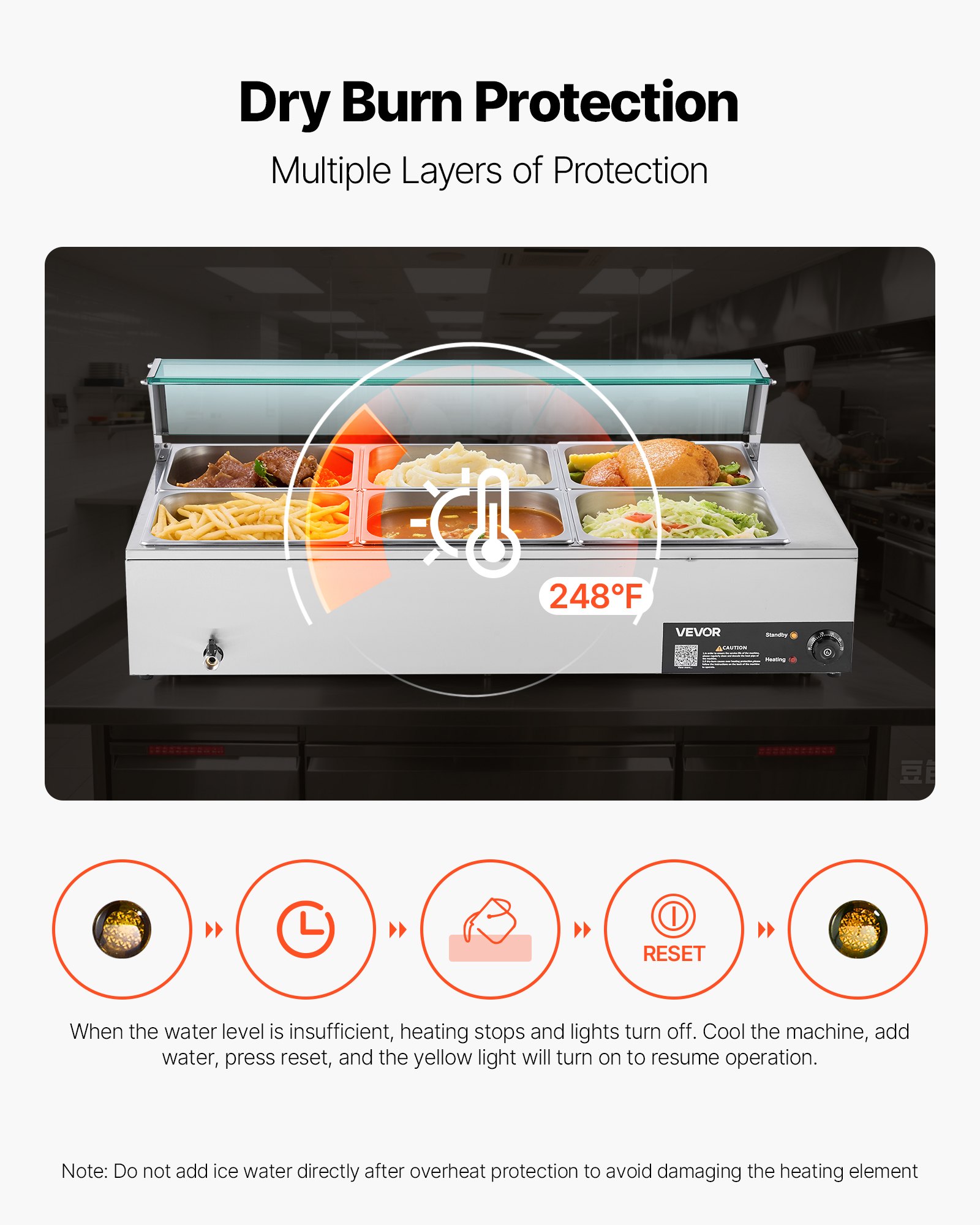 VEVOR Komercijalni grijač hrane (6 x 1/2 posuda), električni grijač od nehrđajućeg čelika od 1,5 kW sa staklenim poklopcem i kutlačom, posuđe za prženje za catering, restoran, zabave
