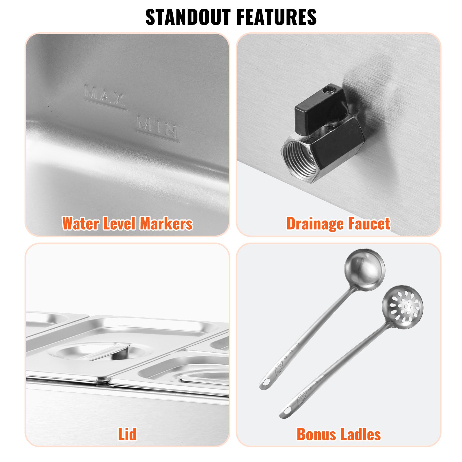 VEVOR Komercijalni grijač hrane 15,5 l Posude za hranu 2 x 1/3 + 2 x 1/6 veličine, Električna ploča za grijanje, Radna ploča od nehrđajućeg čelika 1200 W, Bain-Marie s funkcijom buffet, Regulacija temperature 30-85 °C