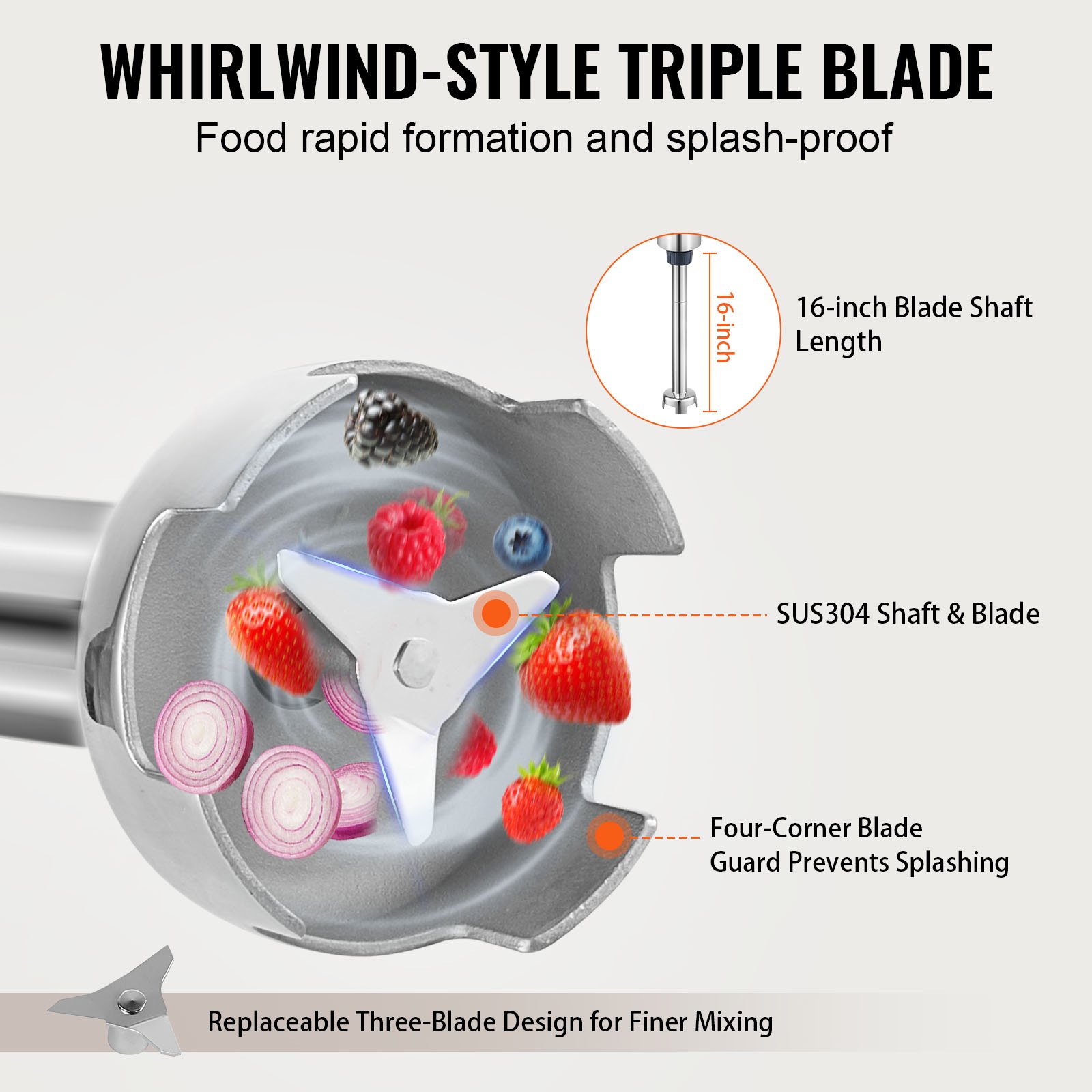 VEVOR Komercijalni ručni mikser, ručni mikser od 500 W za teške uvjete rada, blender s promjenjivom brzinom od 16 inča s oštricom od nehrđajućeg čelika, prijenosni višenamjenski blender za juhe, umake, pire krumpir, vrhnje