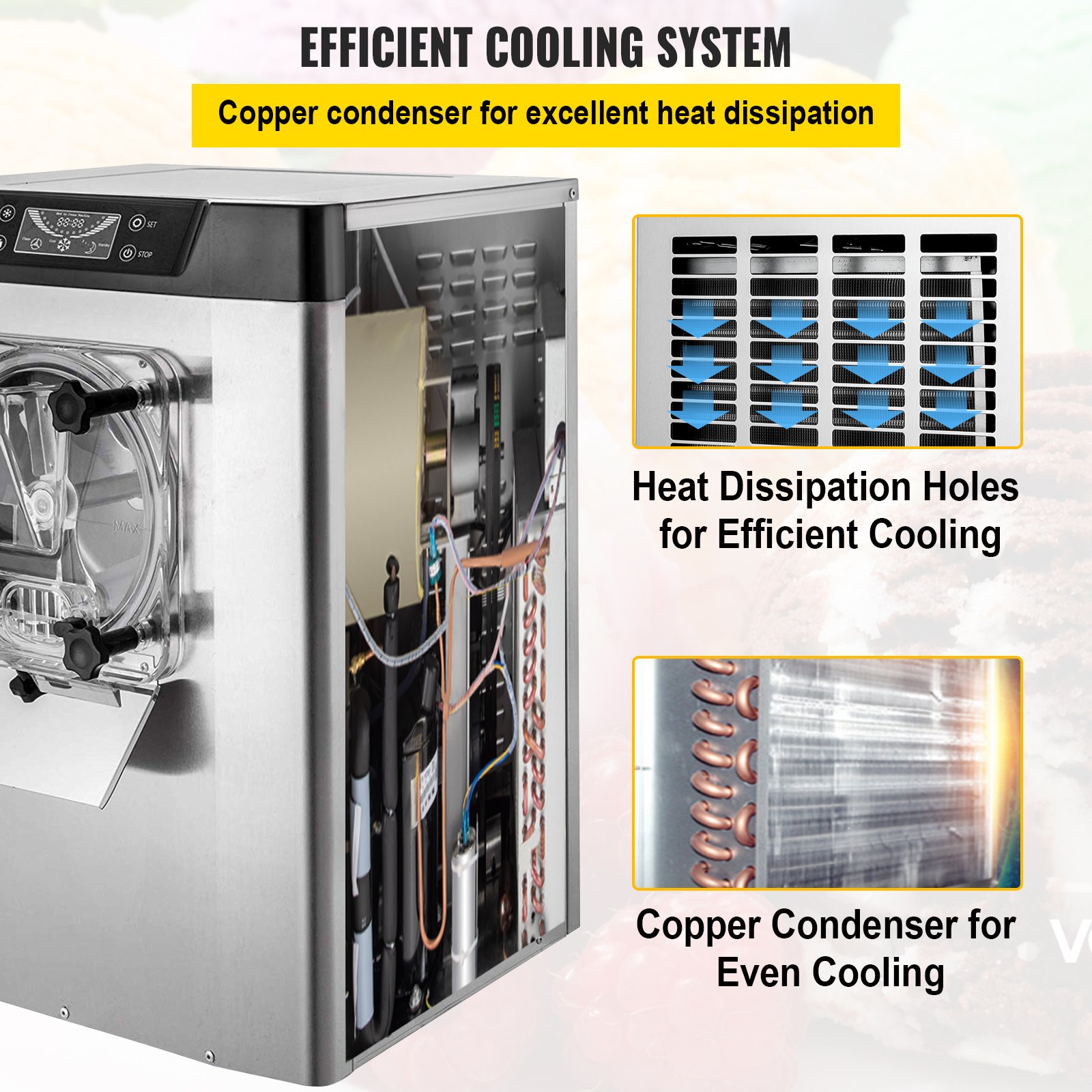 VEVOR Komercijalni aparat za sladoled, 16-20 L/H, 1400W aparat za tvrdi sladoled s pametnim LCD zaslonom i raznim okusima, za snack barove, restorane, srebrni