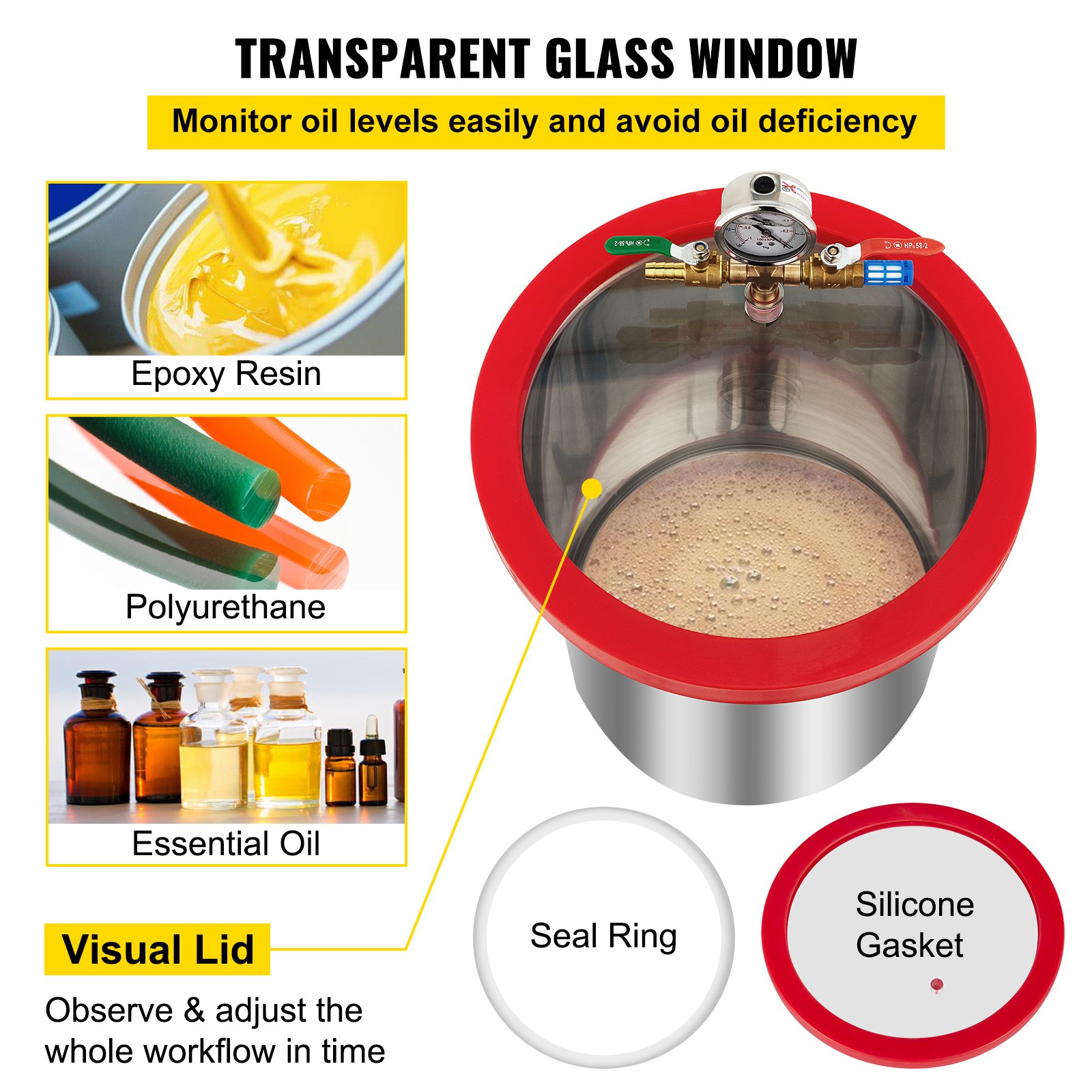 VEVOR vakuumska pumpa, komplet vakuumske komore 19L 142L/min 1/3HP 1-stupanjska