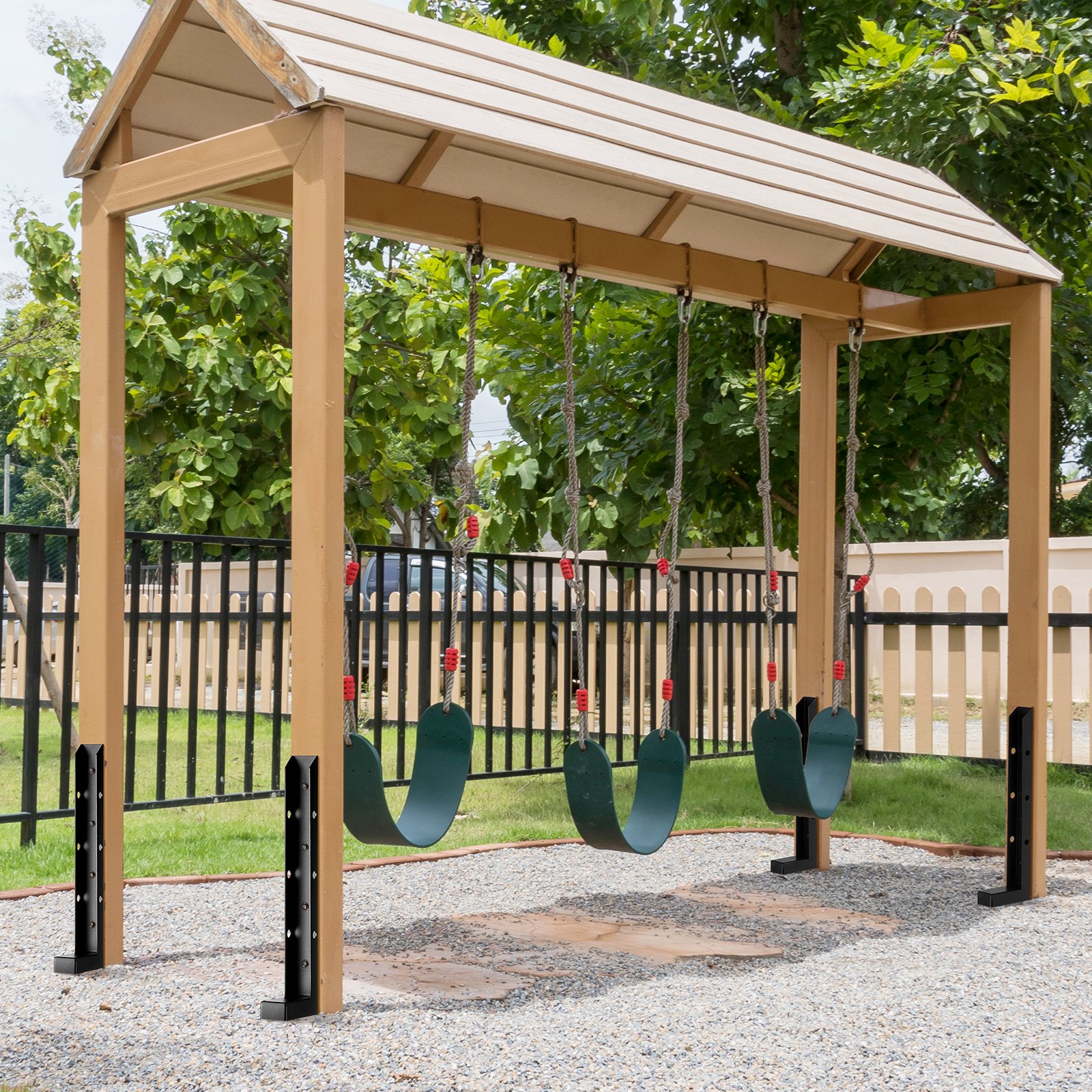 VEVOR Komplet za popravak sidra za stupove ograde, pakiranje od 4 komada, unutarnji promjer 51 x 51 mm, potporni kolci za stupove ograde od teškog čelika, sidreni šiljak za popravak iskrivljenih ili slomljenih drvenih stupova ograde