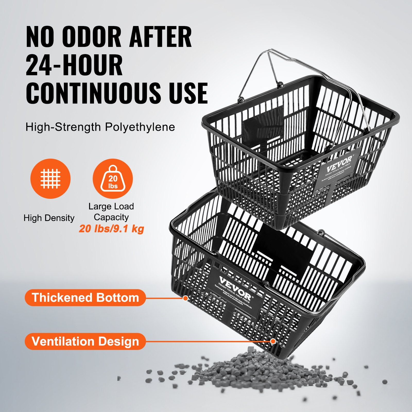 VEVOR košara za kupovinu, pakiranje od 12 komada, 21 l teška plastična košara za kupovinu s metalnom ručkom i postoljem, 42 x 30 x 21 cm, prijenosna košara za kupovinu za maloprodajne trgovine i supermarkete