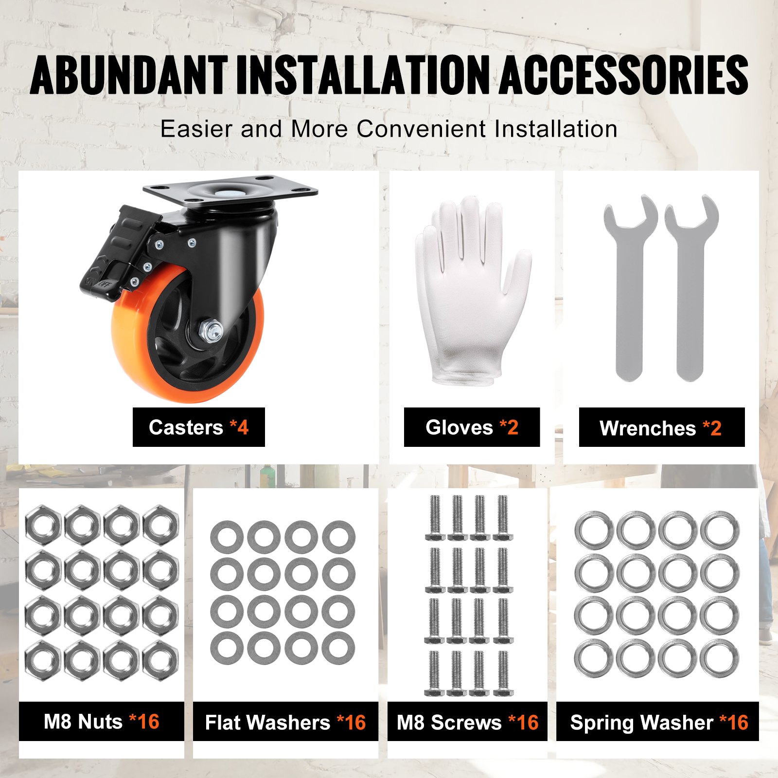 VEVOR kotačići za namještaj, set od 4, okretni kotačići, PVC, φ101.6 mm, težina 635 kg, transportni kotačići s A/B kočnicama, kutijasti kotačići, okretni za 360°, teški kotačići za domove, urede, studije, tvornice