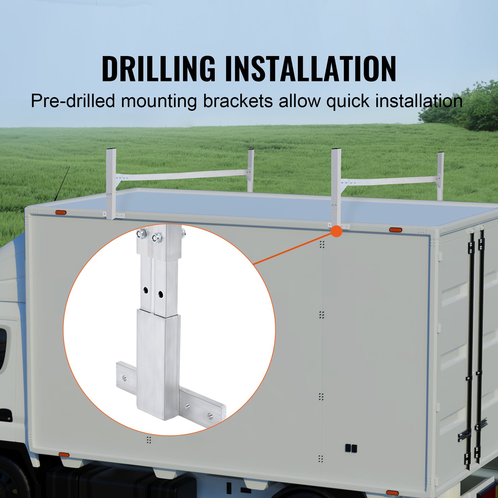 VEVOR krovni nosač za ljestve Krovne šine 2 kom. Duljina 300–2060 mm Podesivi nosač za kamione Visina 150–230 mm, Nosivost 181 kg Nosači za prtljagu za kamione Aluminijska legura Krovni nosač otporan na hrđu i koroziju