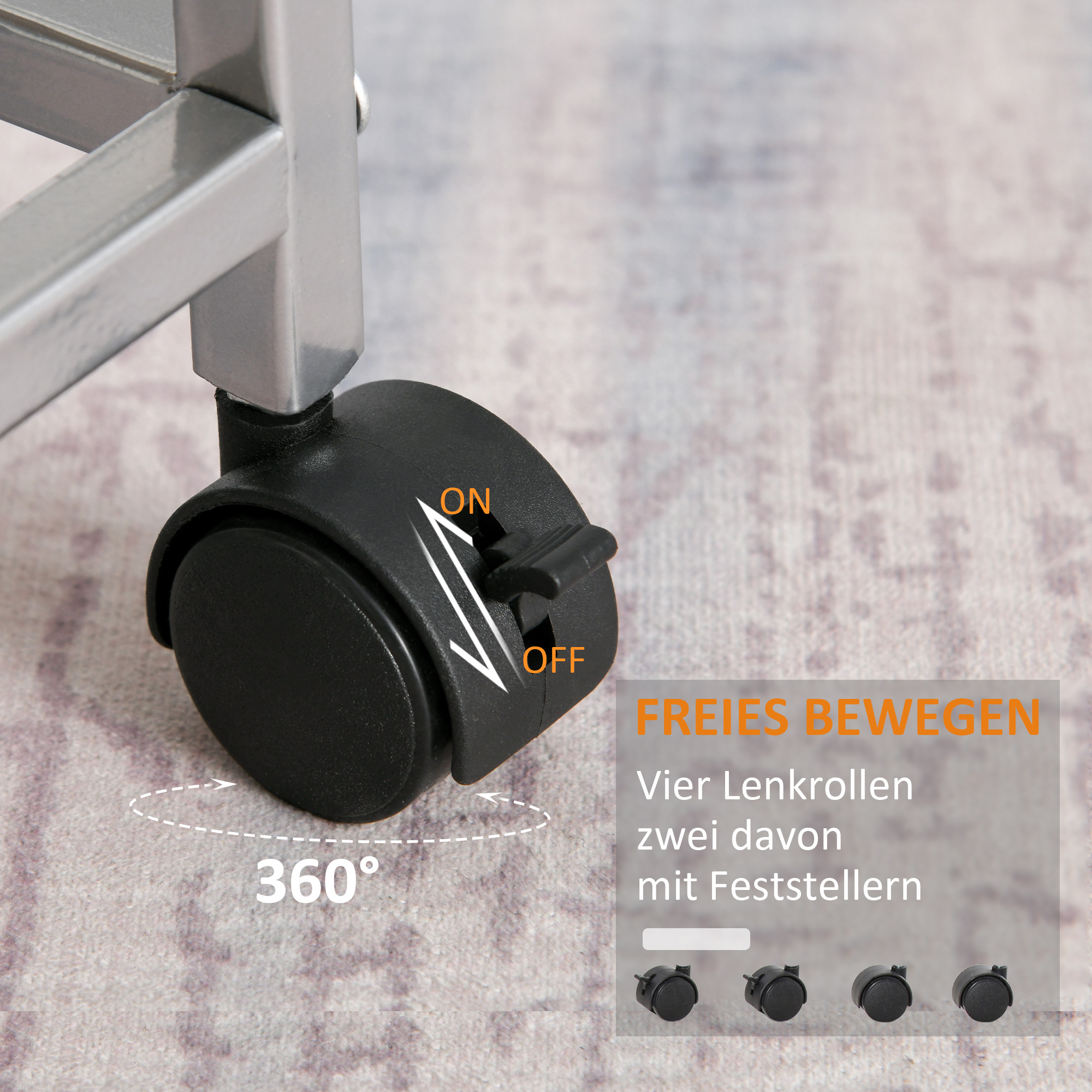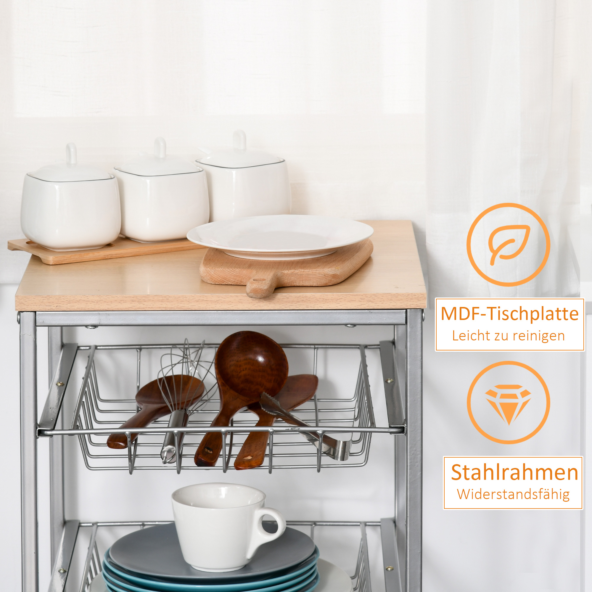 Naš bočni stolić pravi je višenamjenski pomagač. Obilje prostora, izvrsna stabilnost i jednostavan dizajn čine ga atraktivnim kuhinjskim pomagačem, komodom ili pomoćnim stolićem. Četiri pretinca za pohranu nude puno prostora. Ovisno ili u tome gdje ga koristite, možete uredno pohraniti lonce, knjige, voće, povrće ili čak ukrasne predmete. Zahvaljujući četiri okretna kotačića, bočni stolić možete lako pomicati. Ako objavite nešto, moći ćete vidjeti hranu. Naša višenamjenska kolica – praktični svestrani uređaj za vaš dom.