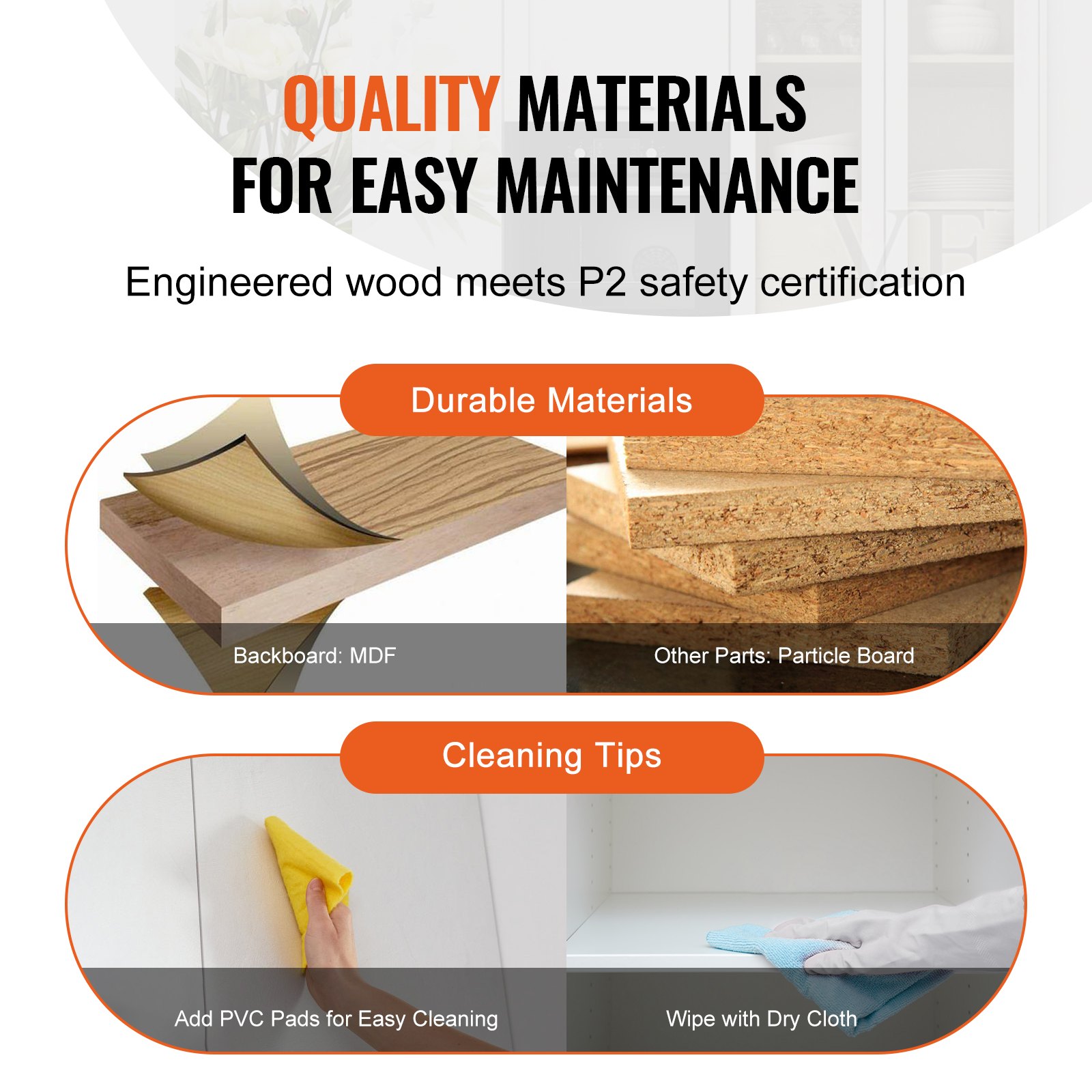 VEVOR Kuhinjski ormarić za smočnicu, Ormarić za pohranu hrane 1529 mm, 50 kg, Samostojeći ormarić za smočnicu s 3 police (2 podesive), Ostava od inženjerskog drva za kuhinju, blagovaonicu