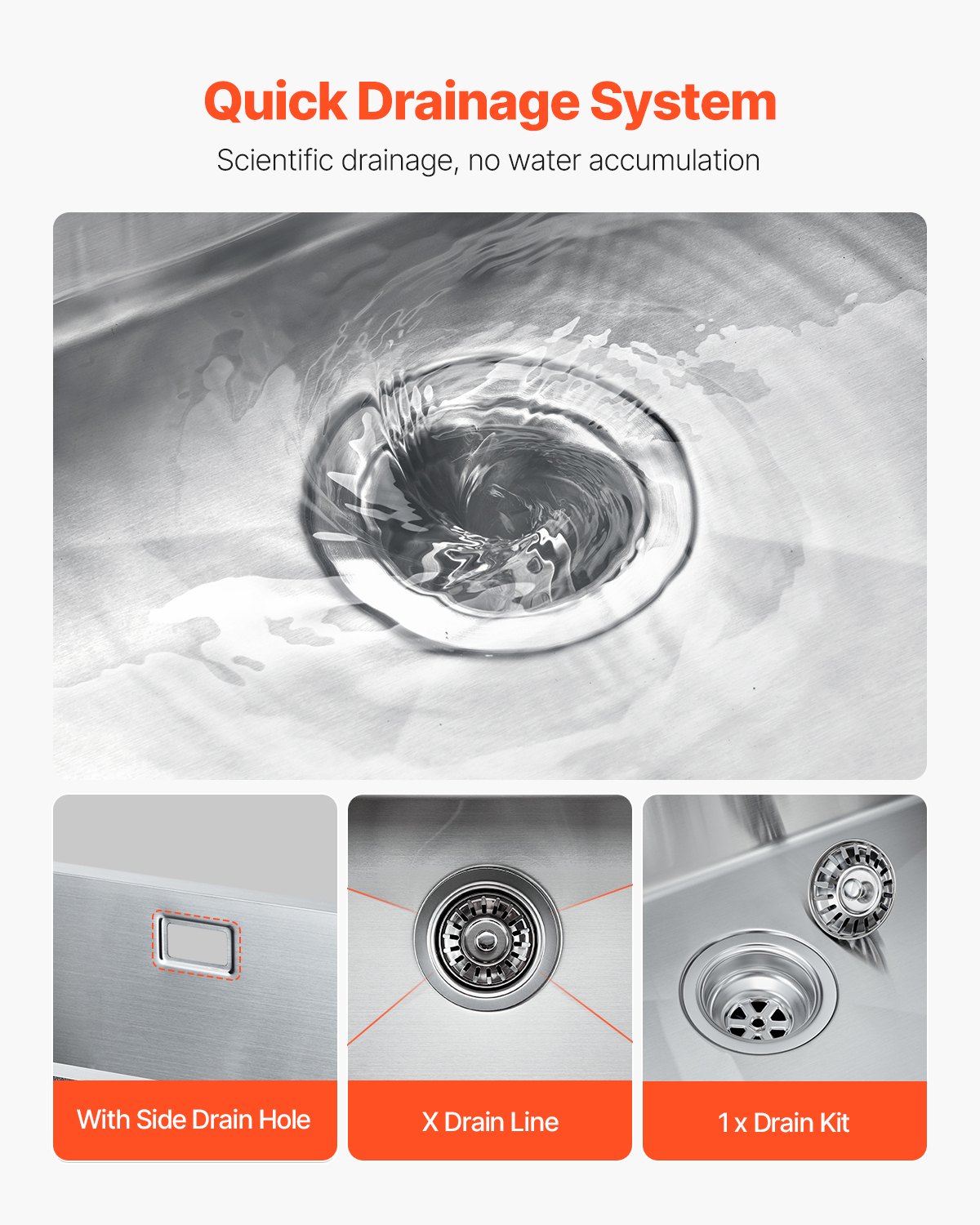 VEVOR Kuhinjski sudoper, Ugradbeni sudoper, 50 x 43 x 19 cm, Nehrđajući čelik, Sudoper s jednom posudom i priborom, Kućanski sudoper za kamp-kućicu, Pripremnu kuhinju, Bar