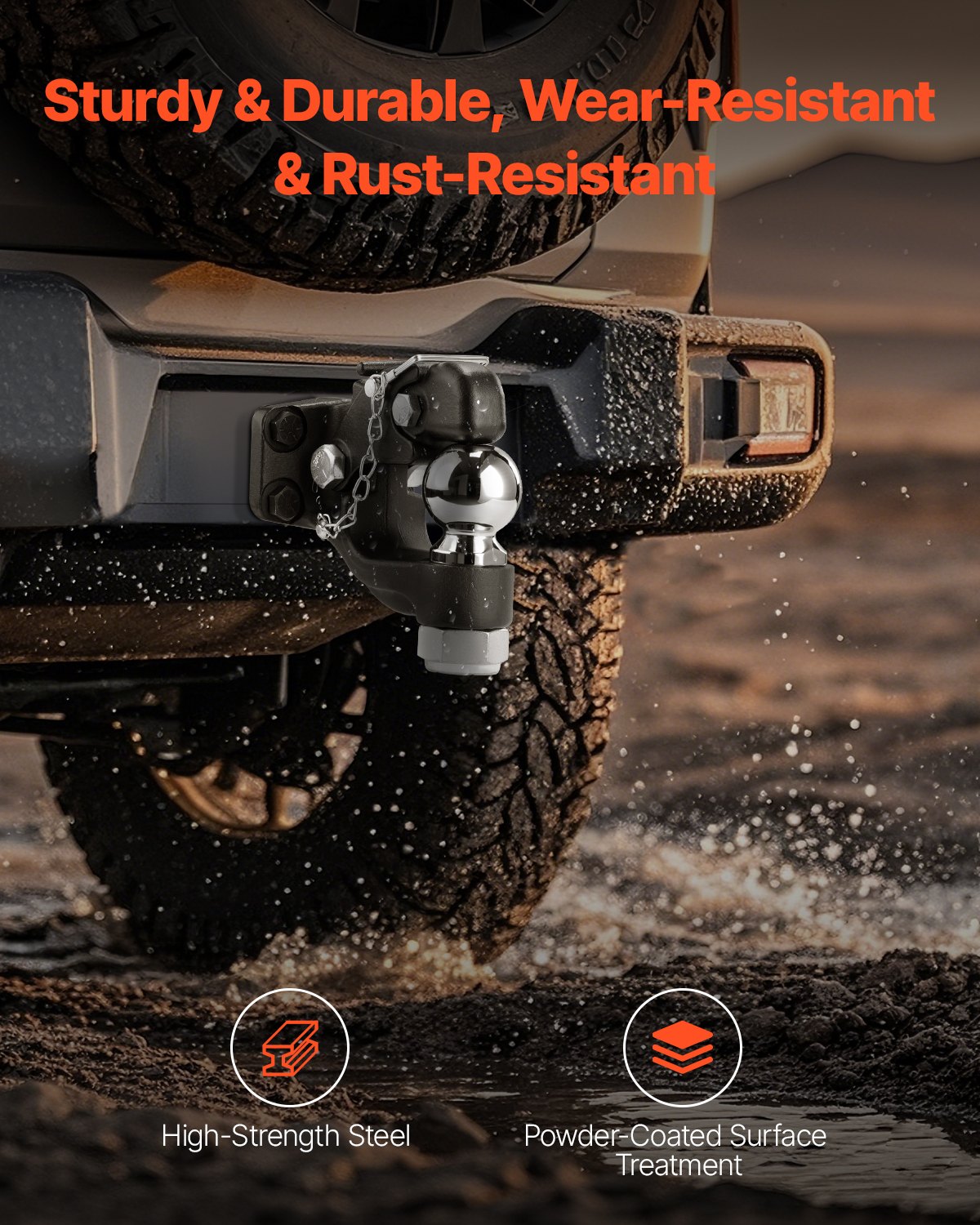 VEVOR Kuka s vijkom, 13605 kg, Kombinacija kuke za prikolicu s kuglom 2-5/16″, odgovara prstenovima okvira 6,35-7,62 cm s kompletom za montažu, crni praškasti premaz