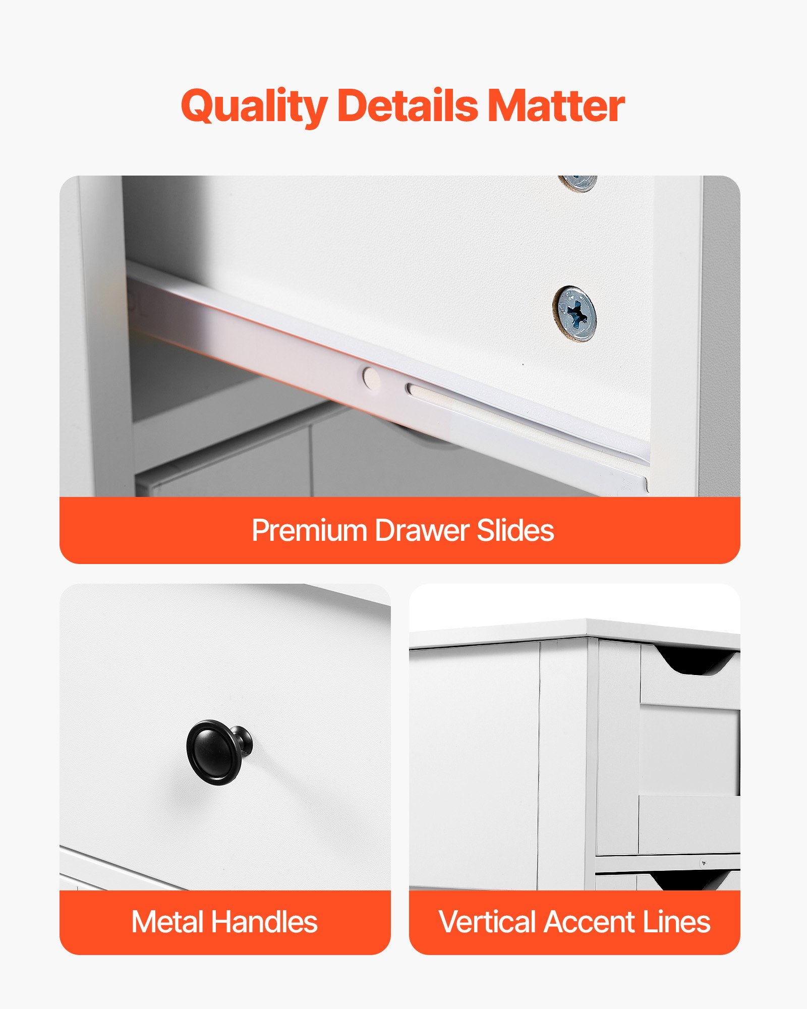 VEVOR kupaonski ormarić, drveni ormarić za pohranu s 4 razine s 2 vrata, 4 ladice i podesivom policom, donji ormarić za kuhinju/dnevni boravak/ulaz, bijeli