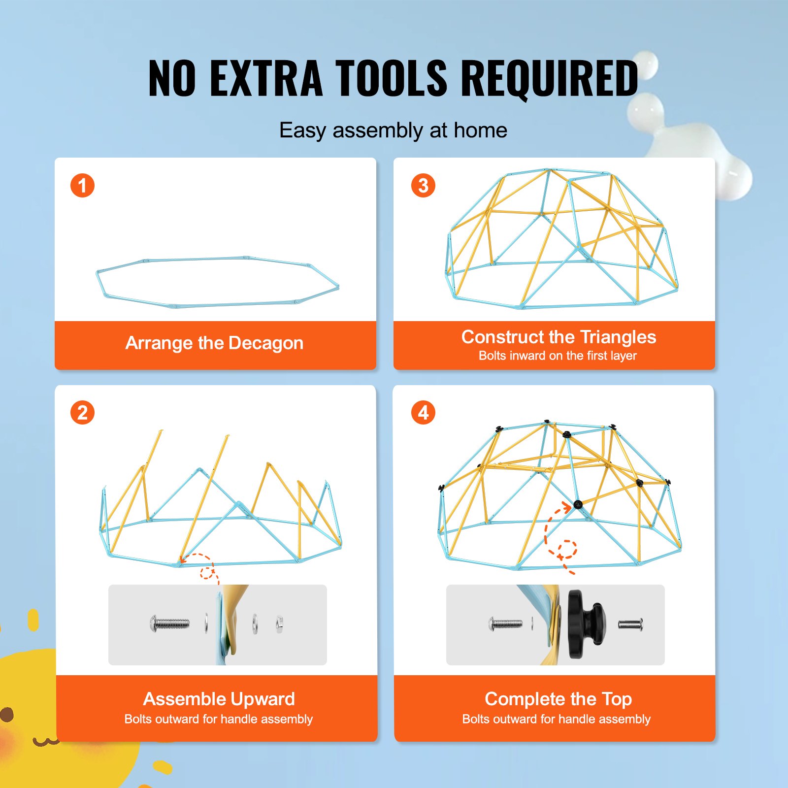VEVOR kupola za penjanje, geometrijska penjalica 2,44 m s toboganom, za djecu od 3 do 9 godina, nosivost 272 kg, s ručkama za penjanje, oprema za igru ​​u zatvorenom/na otvorenom prostoru idealna za dvorišta