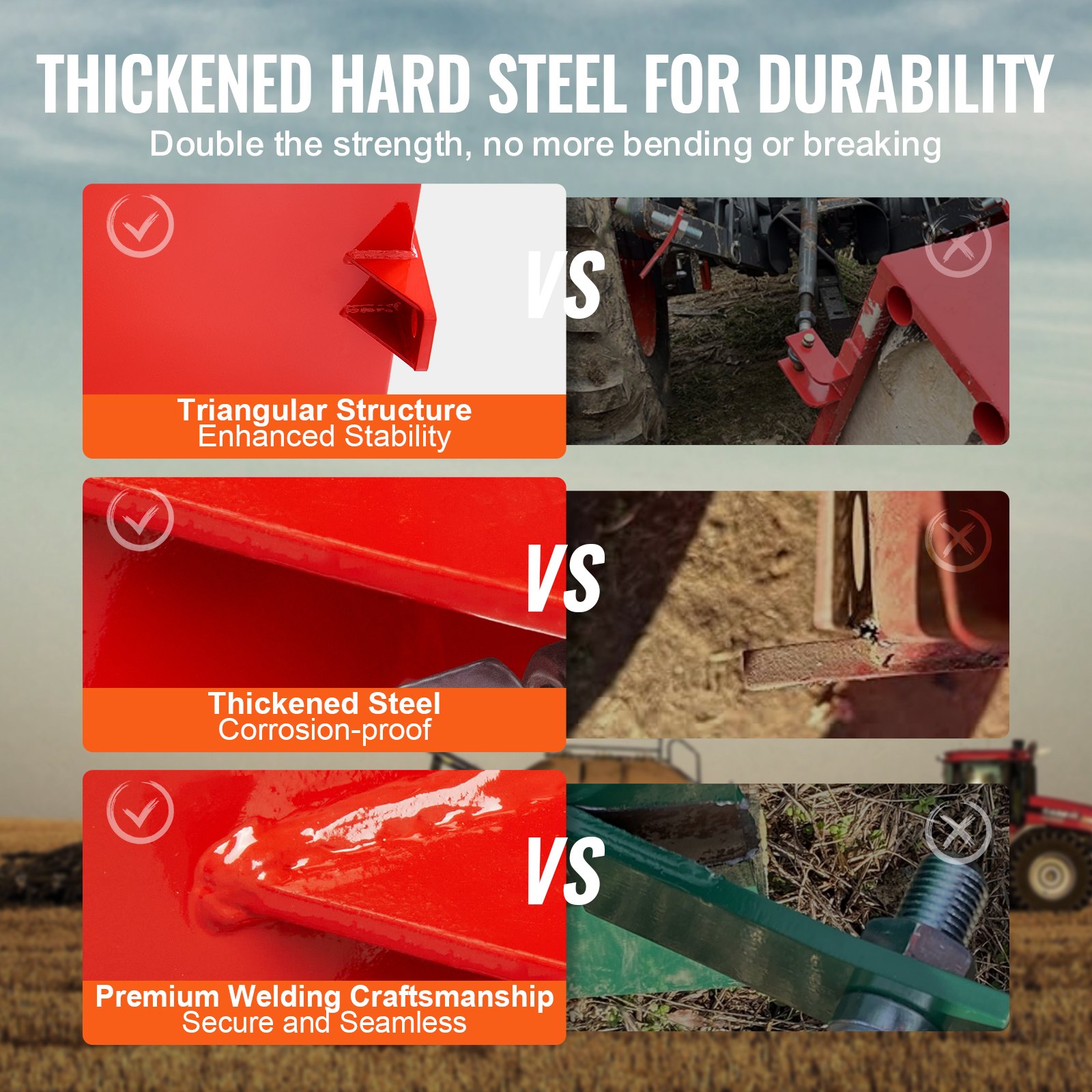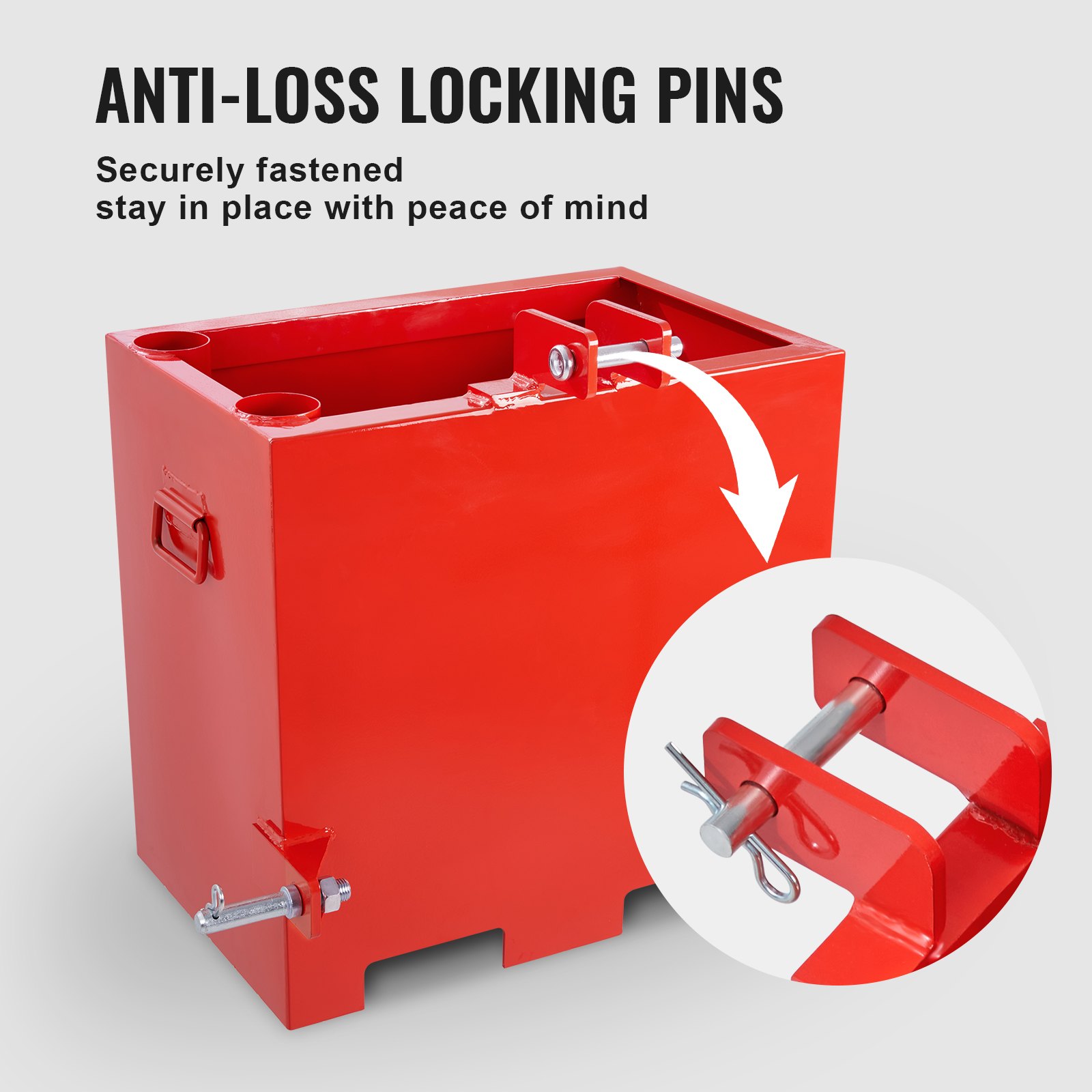 VEVOR balastna kutija za traktore kategorije 1 s 3 točke, kapacitet 800 lb, za prijemnike prikolice od 2 inča, balastna kutija za traktor volumena 5 kubičnih stopa, teški čelik, crvena
