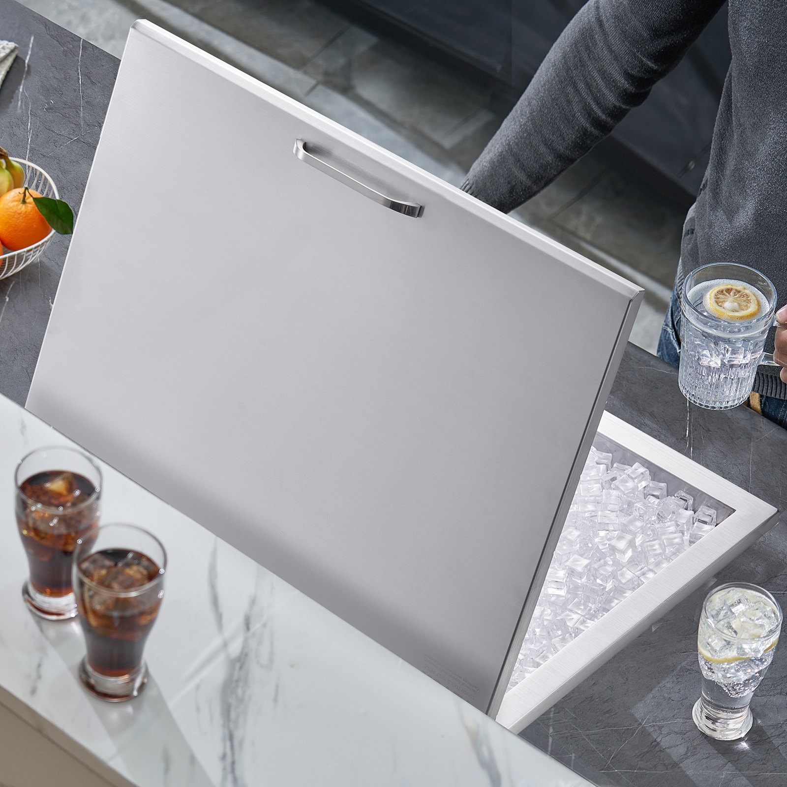 VEVOR Kutija za led koja se ugrađuje, hladnjak za led od nehrđajućeg čelika 107,8 L, komercijalna posuda za led 710 x 508 x 437 mm s poklopcem na šarke, ugrađena kutija za pohranu leda, uključena odvodna cijev i čep za odvod