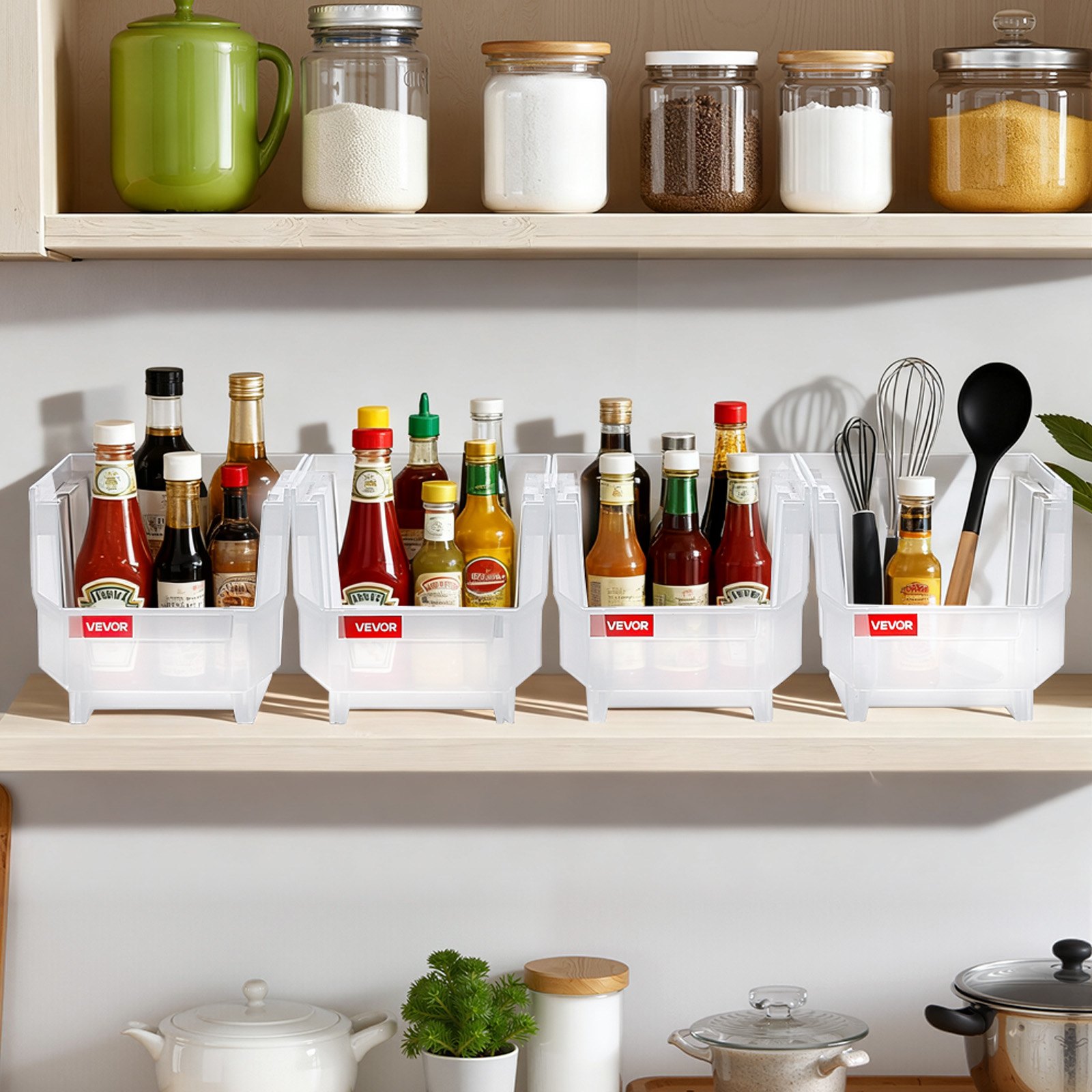 VEVOR Kutije za pohranu koje se mogu slagati, 276x140x130 mm (pakiranje od 8), Kutije za pohranu za organiziranje i pohranu, Kutije za pohranu s otvorenim pogledom, Otvorene ladice za pohranu, za ormar, garažu, male dijelove, uredski pribor, ostali pribor, Prozirne