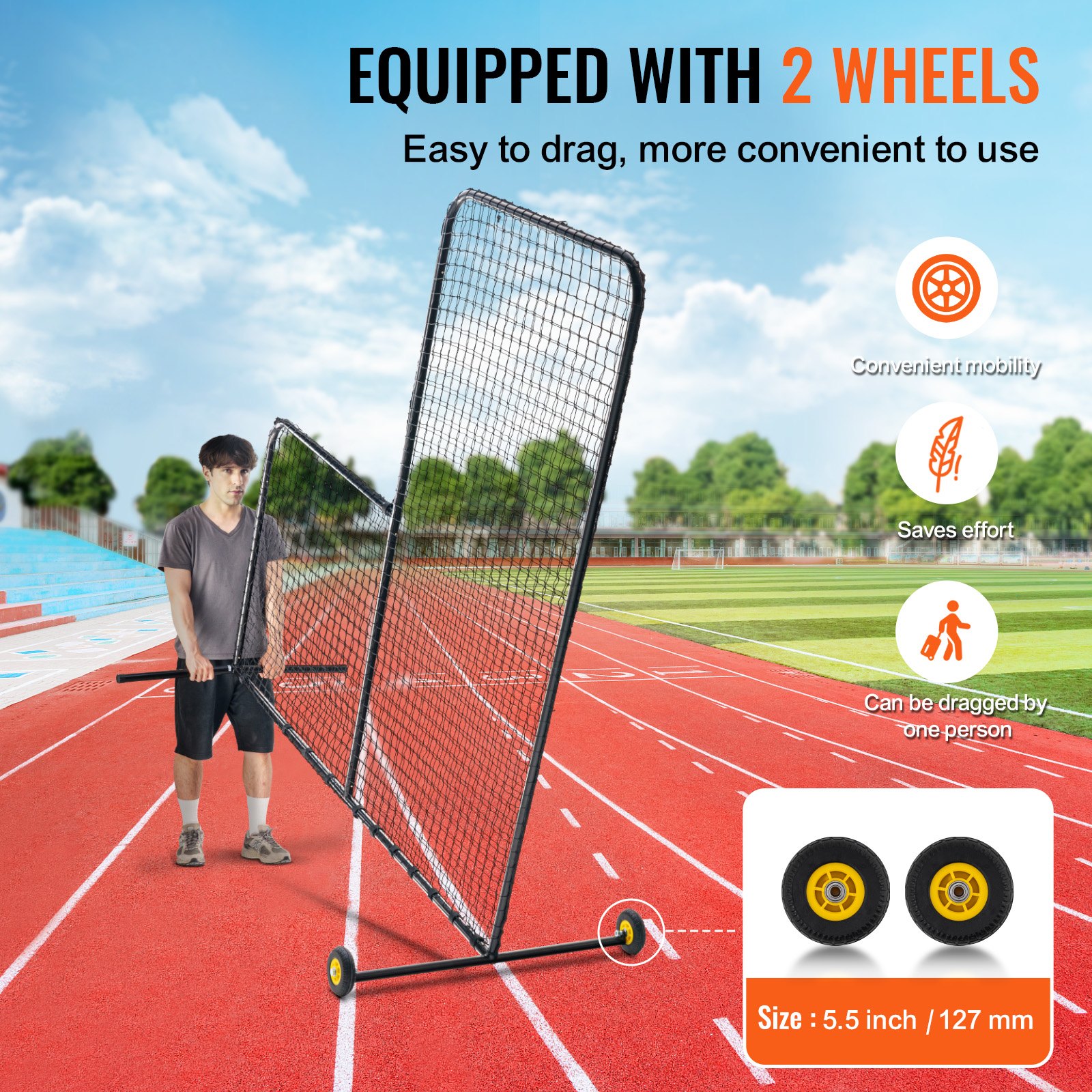VEVOR L-tip za kavez za palicu 213 x 106 x 213 cm Zaštitni kišobran za bejzbol i softball, zaštita tijela, prijenosni kišobran za udaranje sa zaštitom za tijelo i torbom za nošenje i mrežom za bacanje softballa na kotačima, crni
