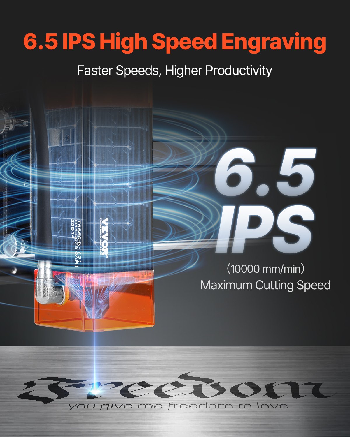 VEVOR laserski graver, snaga 5 W, stroj za lasersko graviranje, radno područje 38 x 40 cm, brzina kretanja 10000 mm/min, komprimirana točka sa zaštitom za oči, za drvo, određene metale
