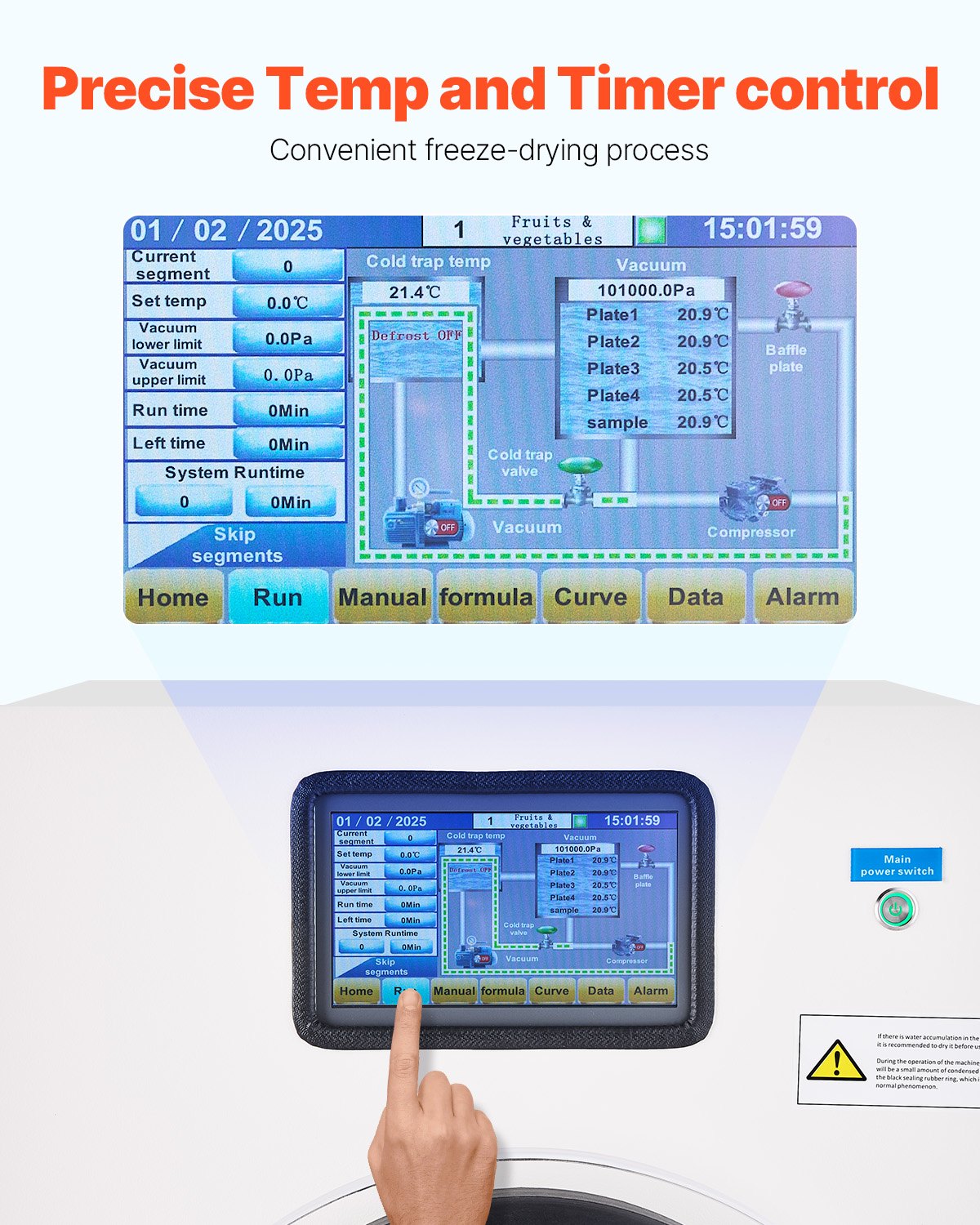 VEVOR liofilizator, stroj za liofilizaciju, oprema za sušenje (kapaciteta 4-6 kg) za hranu s 4-slojnim pladnjevima i… Podesiva temperatura i vrijeme, za voće, bijelo voće