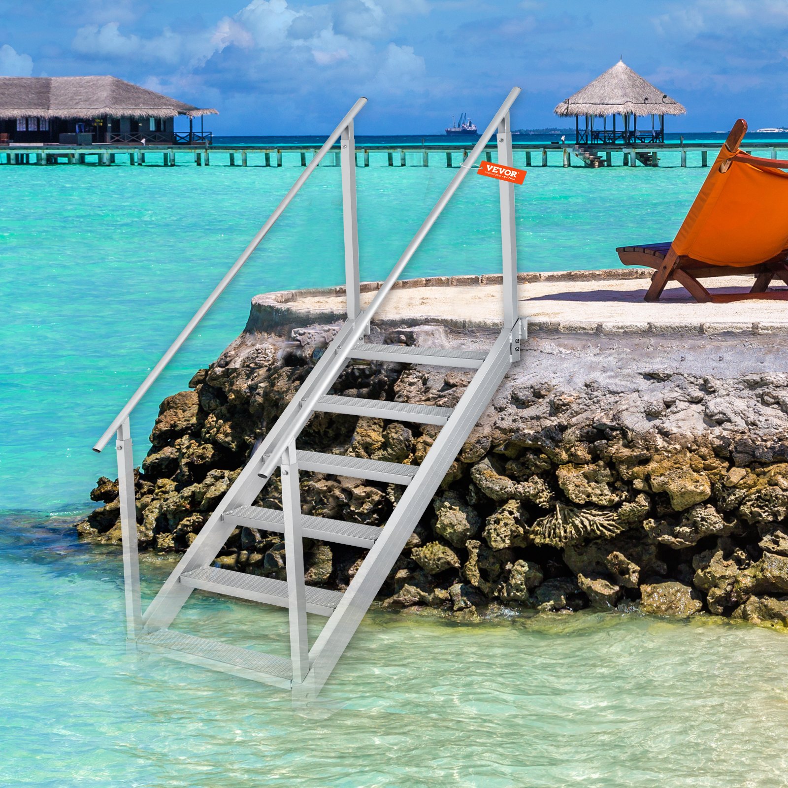 VEVOR Ljestve za kupanje sa 6 stepenica i dva rukohvata, Ljestve za brod, 800x1850x2092 mm, Ljestve za bazen od aluminijske legure, Nosivost 250 kg, Pedale 10 cm, Idealne za luke, brodove, bazene