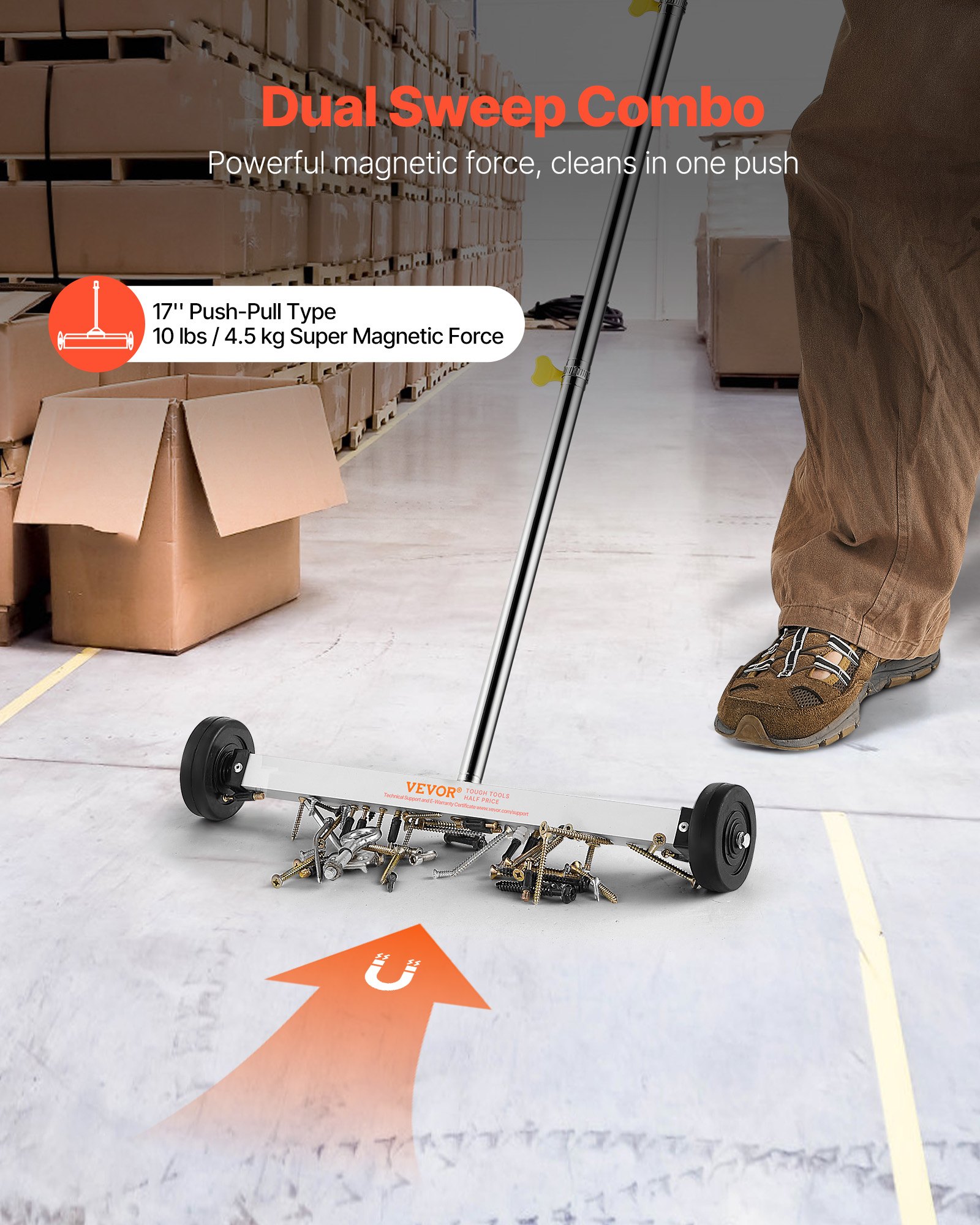 VEVOR Magnetska četka za čišćenje s kotačima, 43 cm, Nosivost 4,5 kg, Magnetska četka s podesivom ručkom, za skupljanje čavala i vijaka, Čišćenje garaža, Krovni projekti