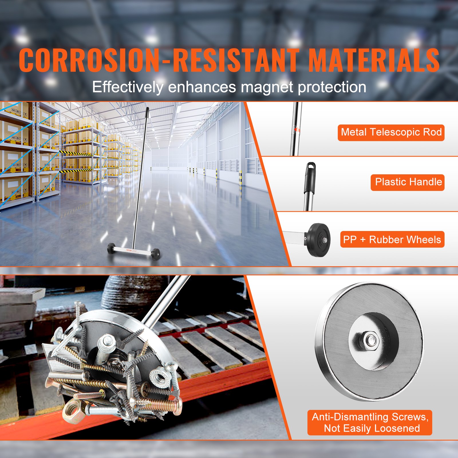 VEVOR Magnetska čistačica s kotačima od 15 inča, nosivosti 3,6 kg, s produljivim magnetskim alatom za usisavanje, podesiva ručka, magnetska čistačica za čavle i vijke, za radionicu, garažu, dvorište