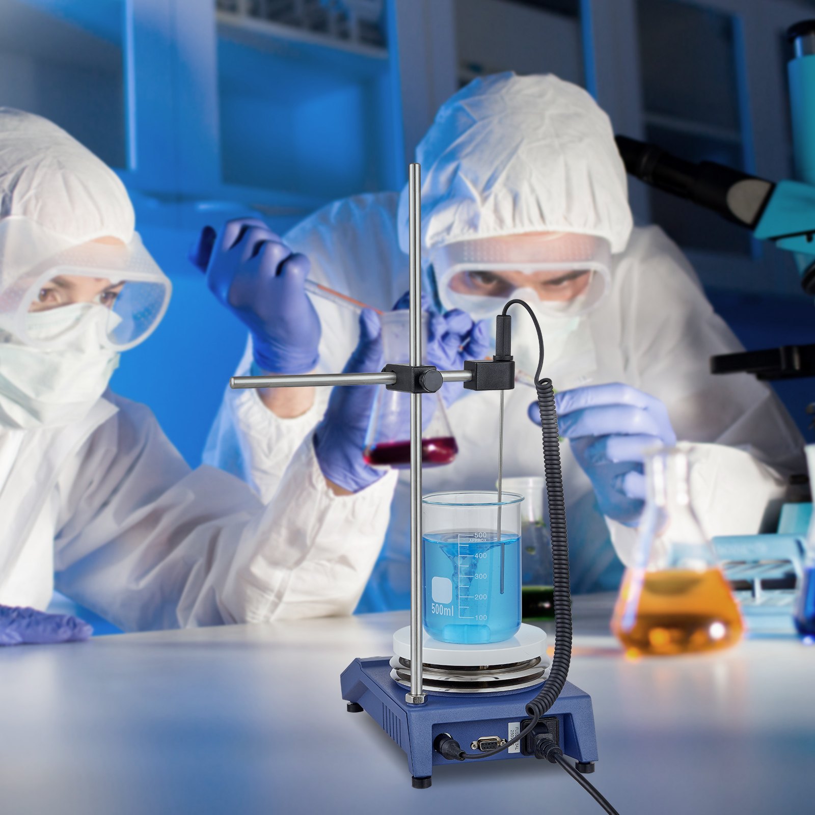 VEVOR magnetska miješalica s grijaćom pločom, maks. 340 °C, 1500 okretaja u minuti, miješalica s grijaćom pločom od 20 L s LED zaslonom, stalkom i šipkama za miješanje, snaga grijanja 650 W