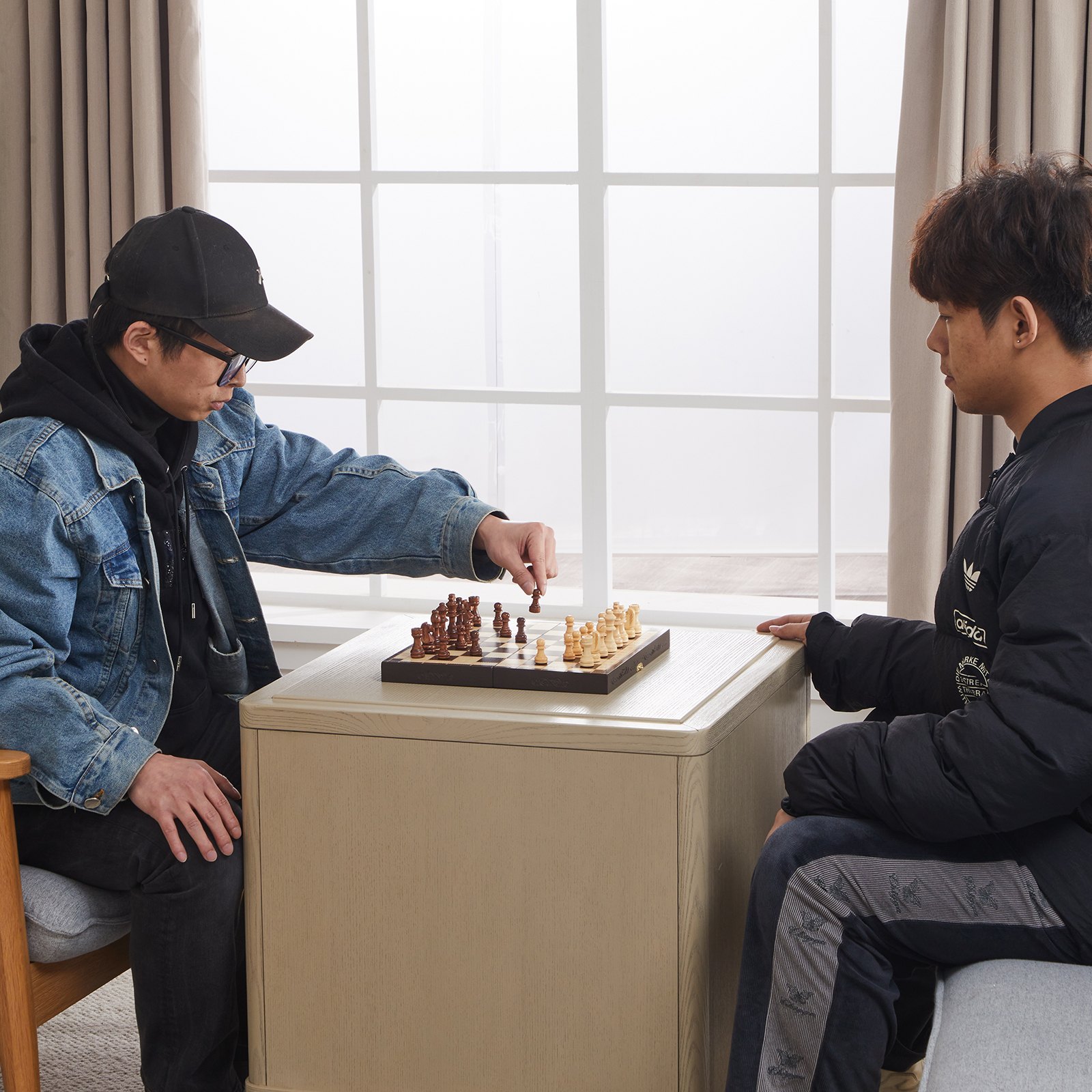 Magnetski drveni šahovski set, 29 x 29 cm, Sklopiva šahovska ploča s šahovskim figurama, Sklopivi šahovski set, Set za obiteljske aktivnosti za zabavu, Putni šah, Djeca