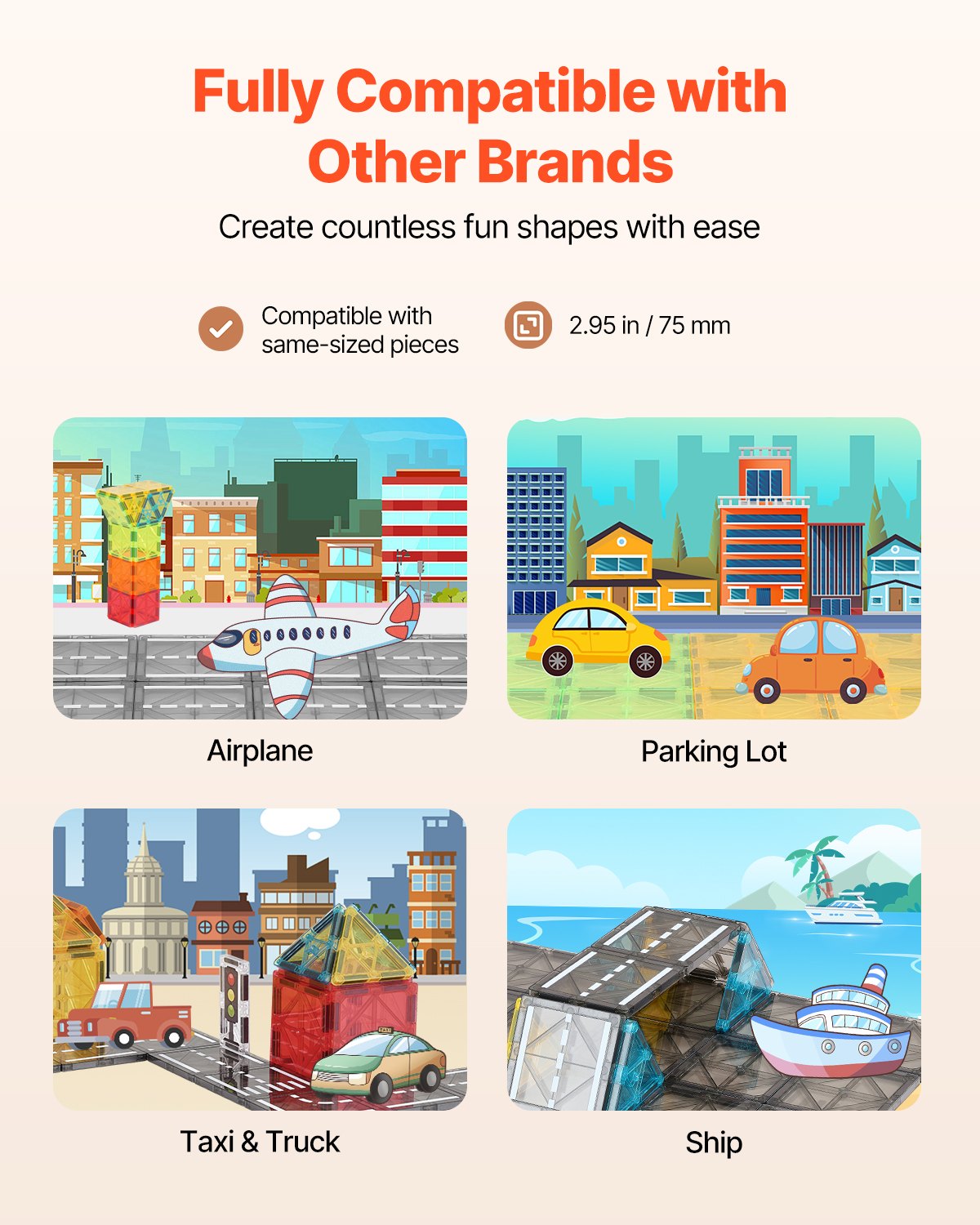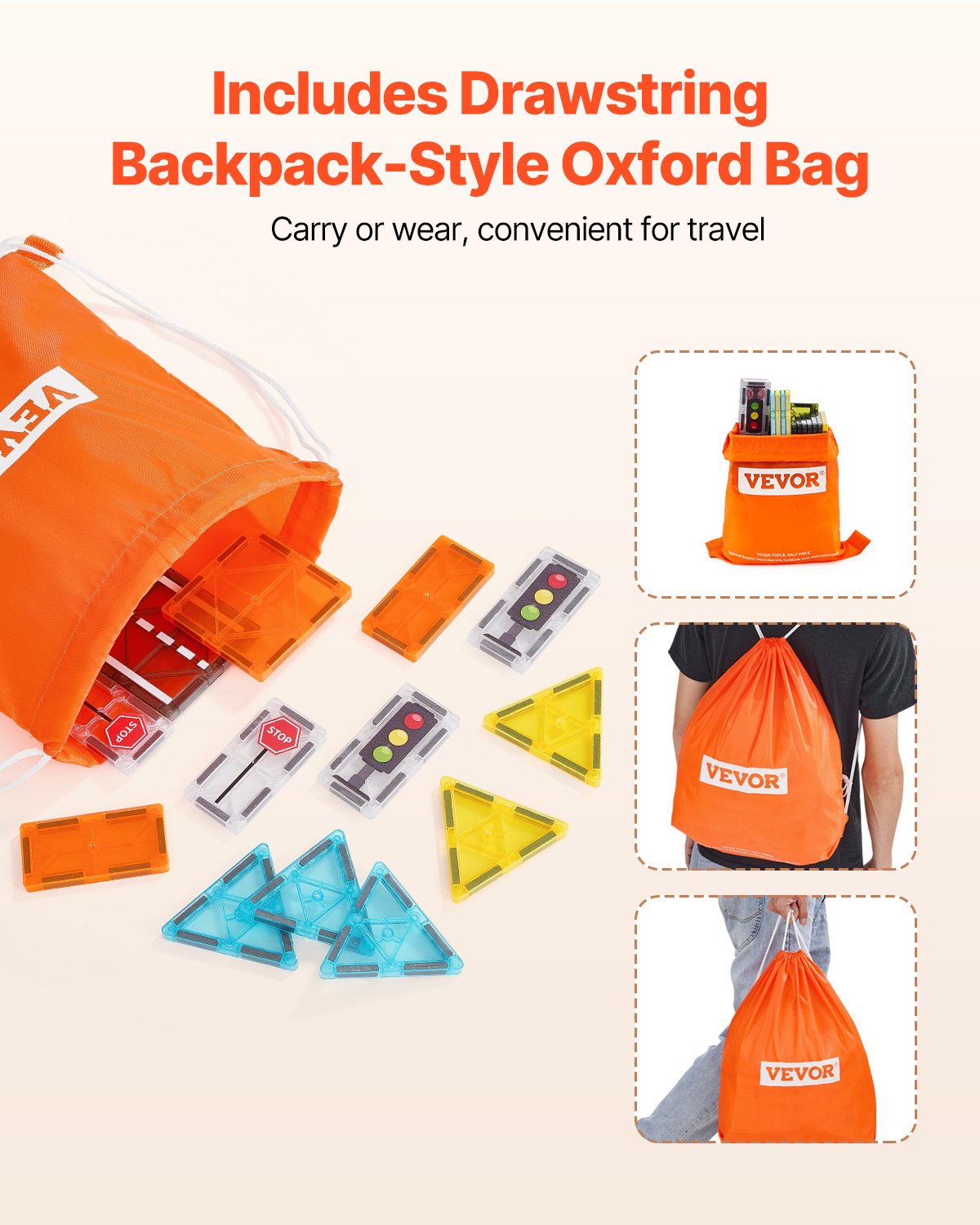 VEVOR Magnetski građevinski blokovi, set od 56 dijelova, magnetski cestovni blokovi, magnetska igračka s torbom za pohranu, STEM senzorna edukativna igračka za slaganje u gradskom području, za djecu od 3 godine i stariju