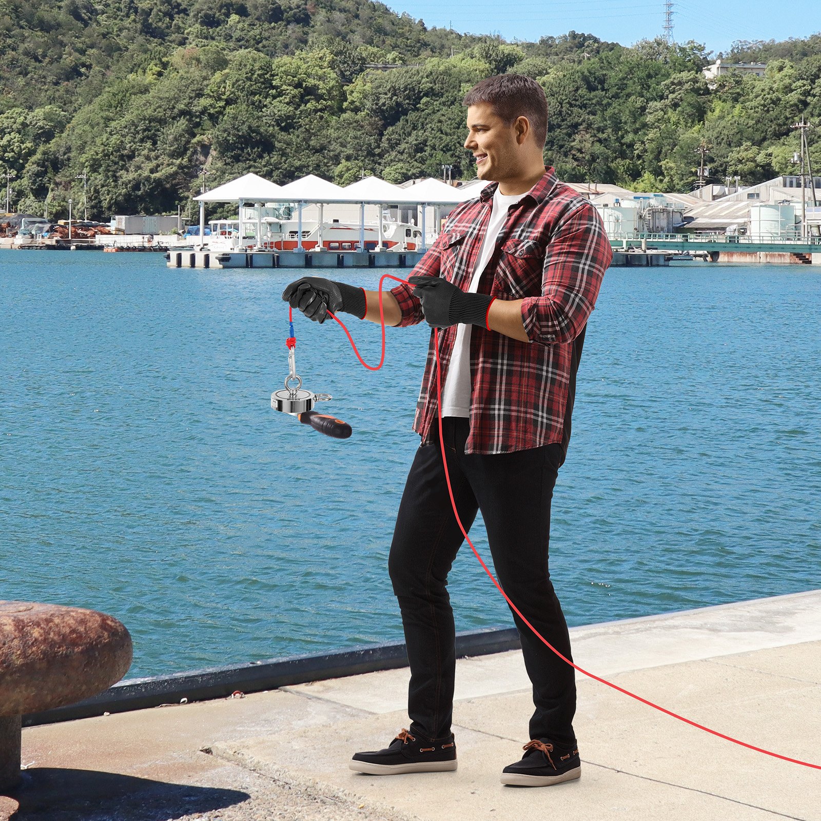 VEVOR Magnetni komplet za ribolov (crveni) 771 kg Dvostrana vučna sila, Rijetki neodimijski magnet Set za ribolov uklj. Udice, teški konopac, rukavice (crne), vijak s ušicom, ljepilo, lopata