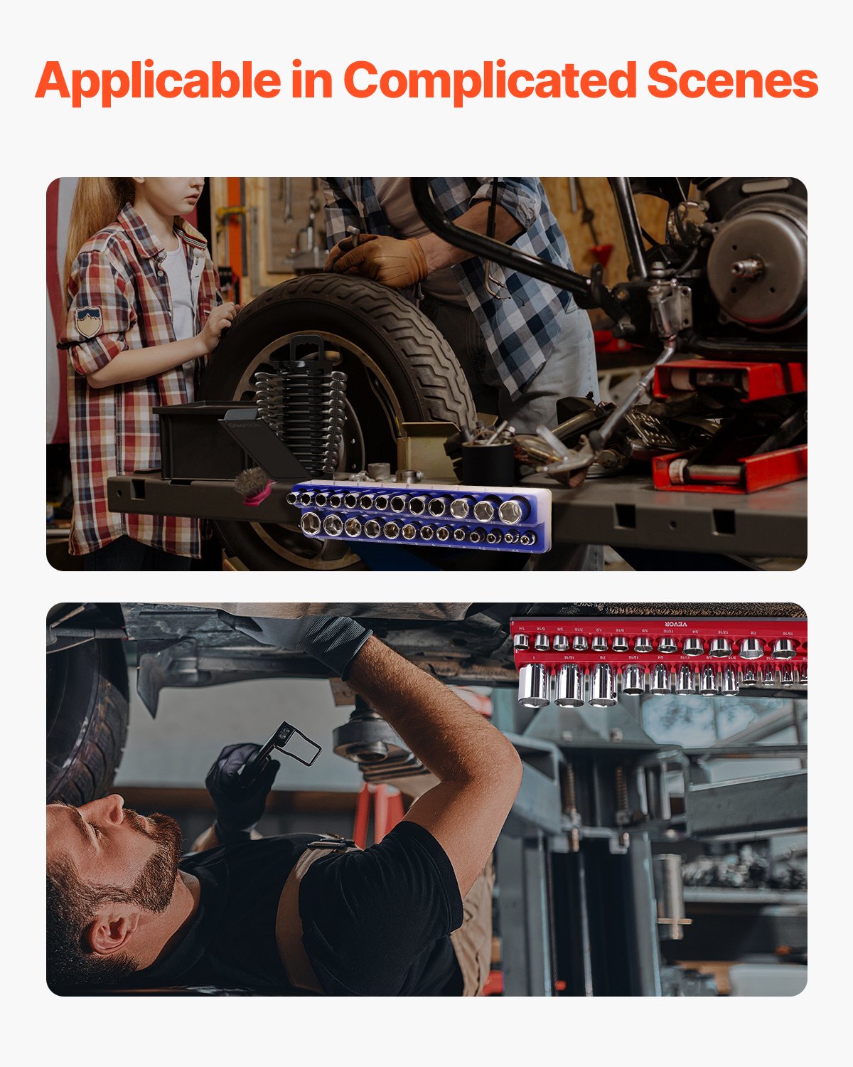 VEVOR Magnetski set organizatora nasadnih ključeva, 4 dijela, 1/4″ i 3/8″ SAE ulošci za nasadne ključeve, za do 108 standardnih i dubokih nasadnih ključeva (nasadni ključevi nisu uključeni)