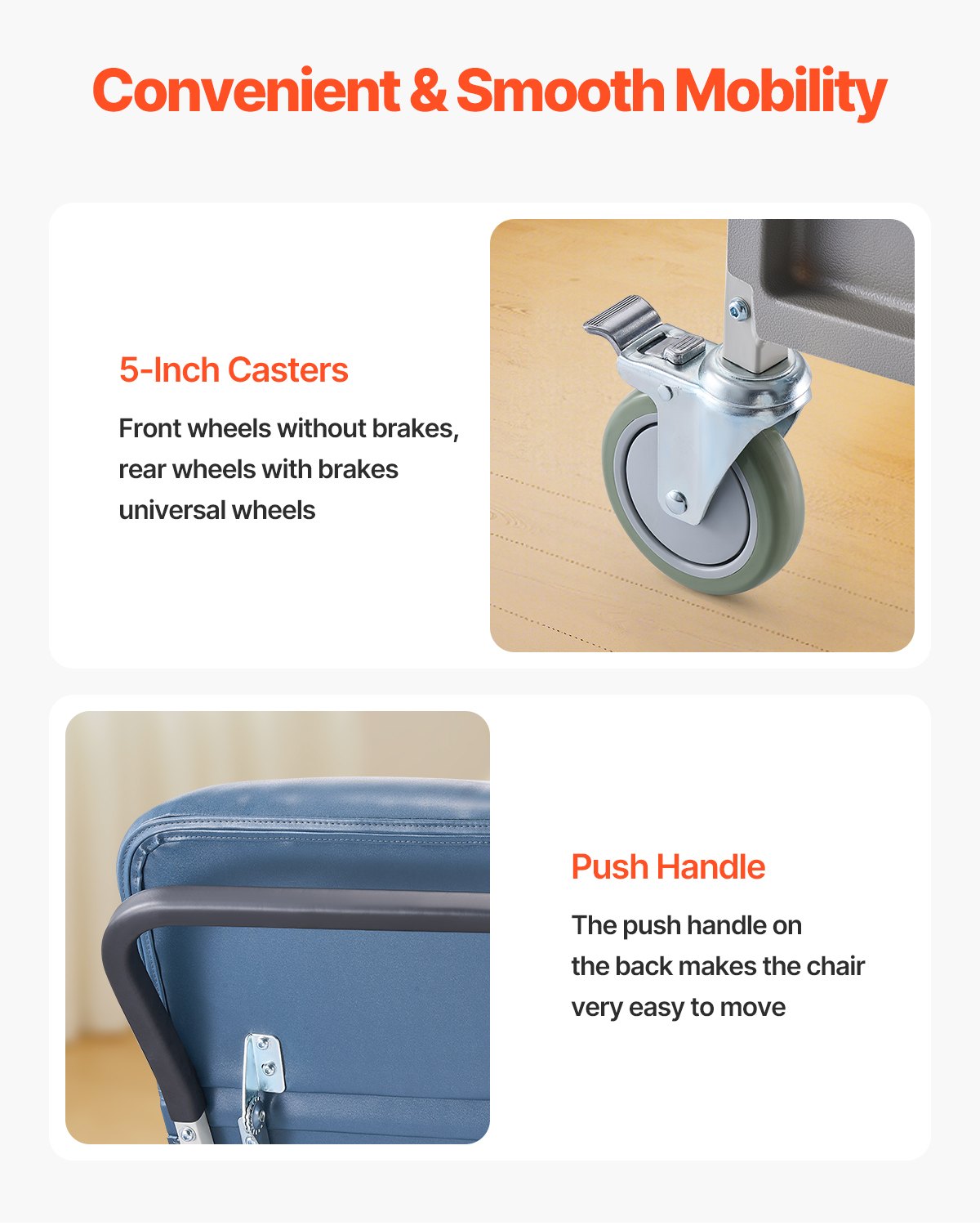 VEVOR medicinska naslonjača, s 3 položaja za naginjanje, Geri-stolica s 4 kotačića, mekanim podstavljenim sjedalom i uklonjivim pladnjem, idealna za bolnice, staračke domove i… Kućna njega