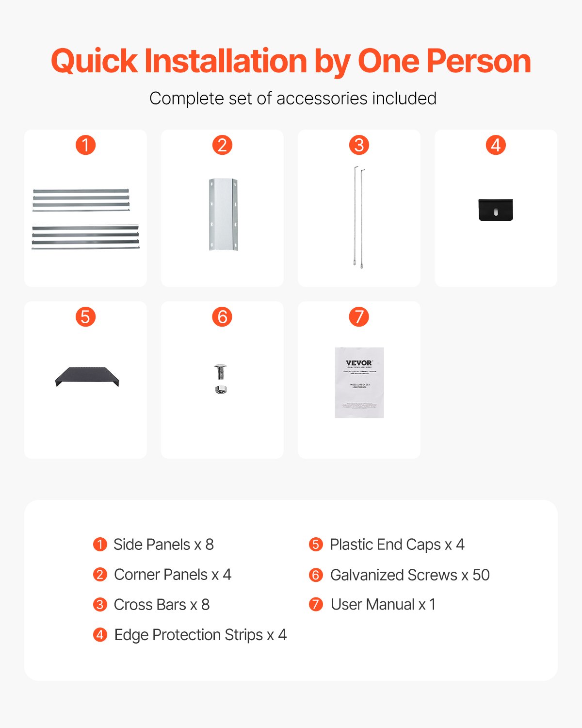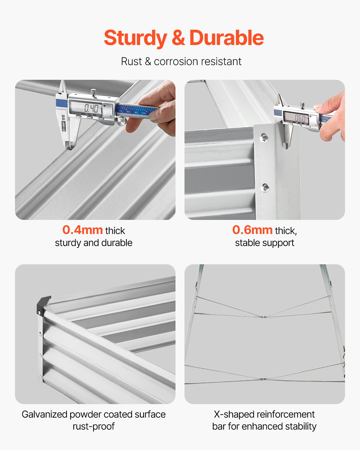 VEVOR Metalna povišena vrtna gredica, 3605x1205x285mm, Pocinčana vanjska žardinjera s otvorenim dnom, Velika gredica za uzgoj povrća, cvijeća, začinskog bilja i sukulenata, srebrna